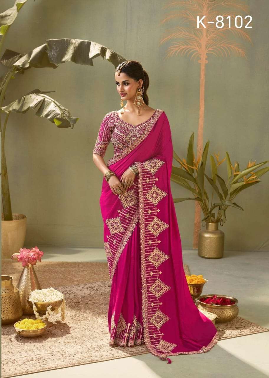 Buy Online Kira Kasva Silk Embroidery work border saree best collection 6 Pcs of Full Catalogue at Wholesale Price. Looking for Kira Kasva Silk Embroidery work border saree best collection Full Catalouge at Best Price? Buy Now Kira Kasva Silk Embroidery work border saree best collection at Wholesale Rate of Rs 22170 with Total 6 Pcs from authroized dealer and supplier of Brand. Cost of Each piece is just only Rs 3695 which is very low and affordable price to resale the product in your retail store Ethnic Export is Surat based Wholesale Supplier & Dealer of Brand. Click on Brand name to Know more about Brand's products.Call or Whatsapp on +91-9825759366 for booking or enquiry