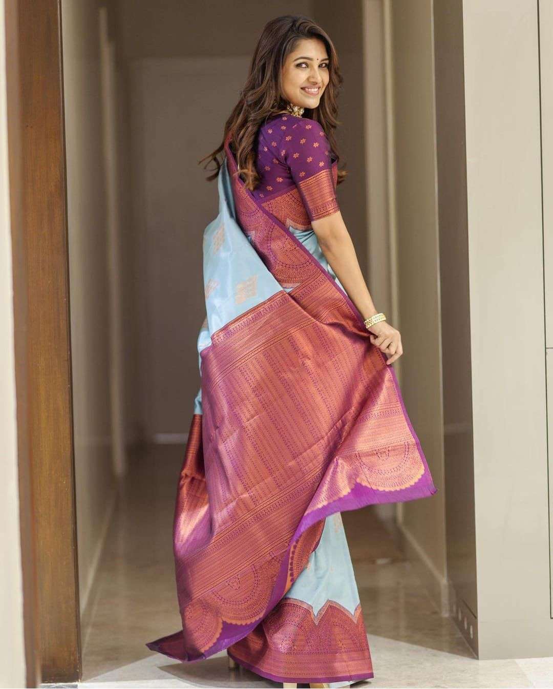 *FABRIC : SOFT LICHI SILK CLOTH.* *DESIGN : BEAUTIFUL RICH PALLU & JACQUARD WORK ON ALL OVER THE SAREE.* *BLOUSE : CONTRAST HEVY BROCADE BLOUSE.*