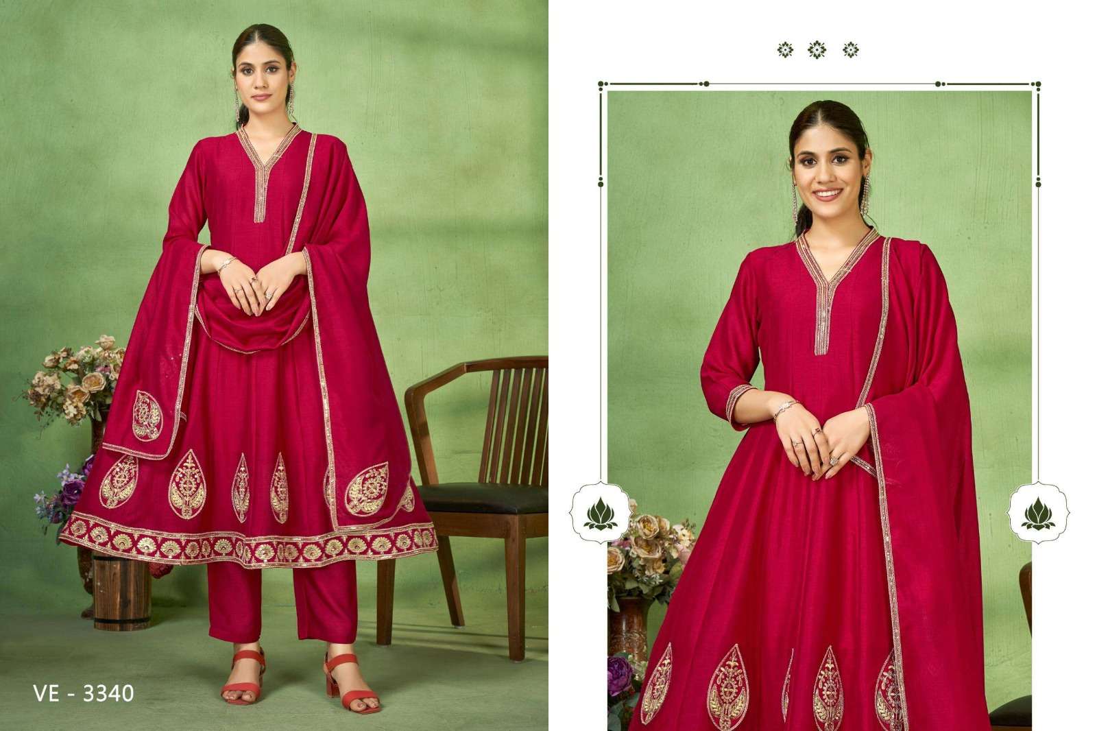 Bottom:- Vichitra Dupatta:-Vichitra With Embroidery work These are combo sets: Select 1 Color All Size Compulsory |