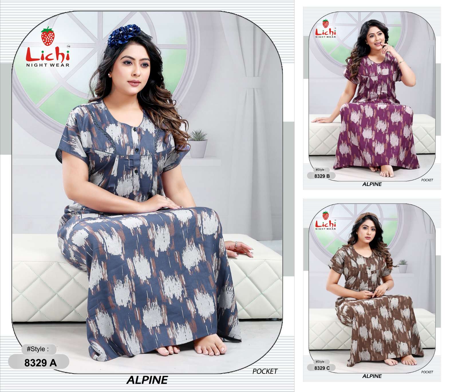 Buy Online LICHI NIGHT WEAR 8318 ALL SEASON COMFORT WOMEN NIGHTY COLLECTION BUY ONLINE 12 Pcs of Full Catalogue at Wholesale Price. Looking for LICHI NIGHT WEAR 8318 ALL SEASON COMFORT WOMEN NIGHTY COLLECTION BUY ONLINE Full Catalouge at Best Price? Buy Now LICHI NIGHT WEAR 8318 ALL SEASON COMFORT WOMEN NIGHTY COLLECTION BUY ONLINE at Wholesale Rate of Rs 5988 with Total 12 Pcs from authroized dealer and supplier of LICHI NIGHT WEAR Brand. Cost of Each piece is just only Rs 499 which is very low and affordable price to resale the product in your retail store Ethnic Export is Surat based Wholesale Supplier & Dealer of LICHI NIGHT WEAR Brand. Click on Brand name to Know more about LICHI NIGHT WEAR Brand's products.Call or Whatsapp on +91-9825759366 for booking or enquiry