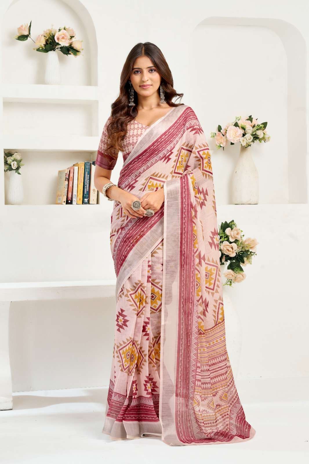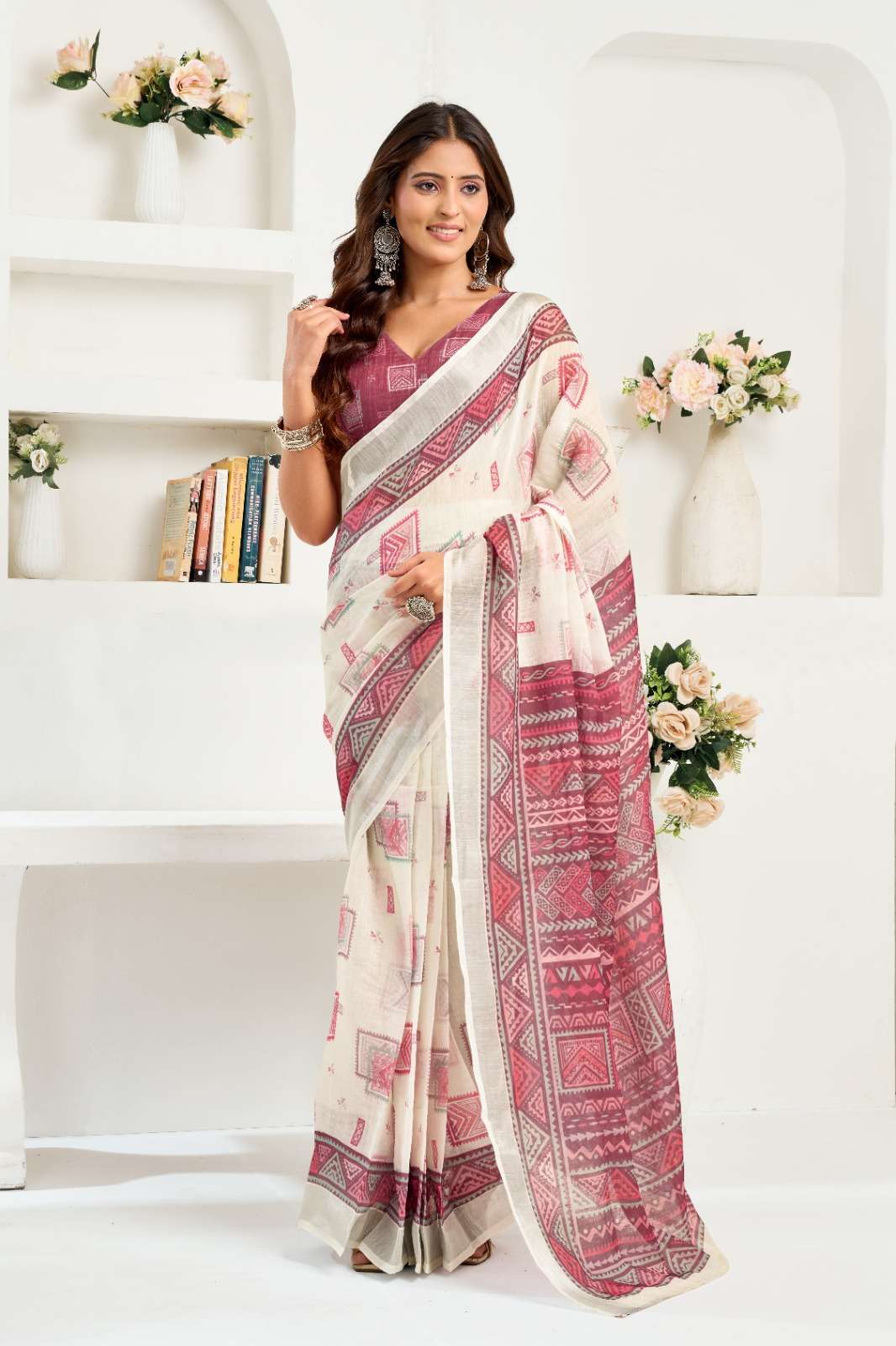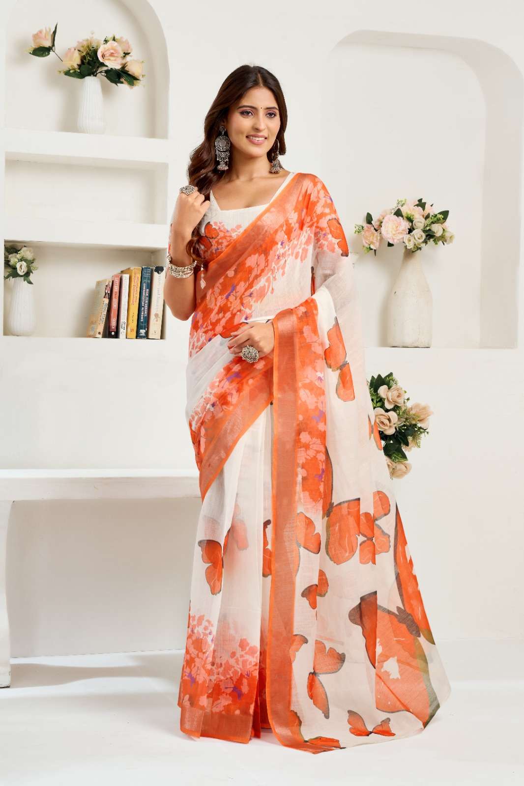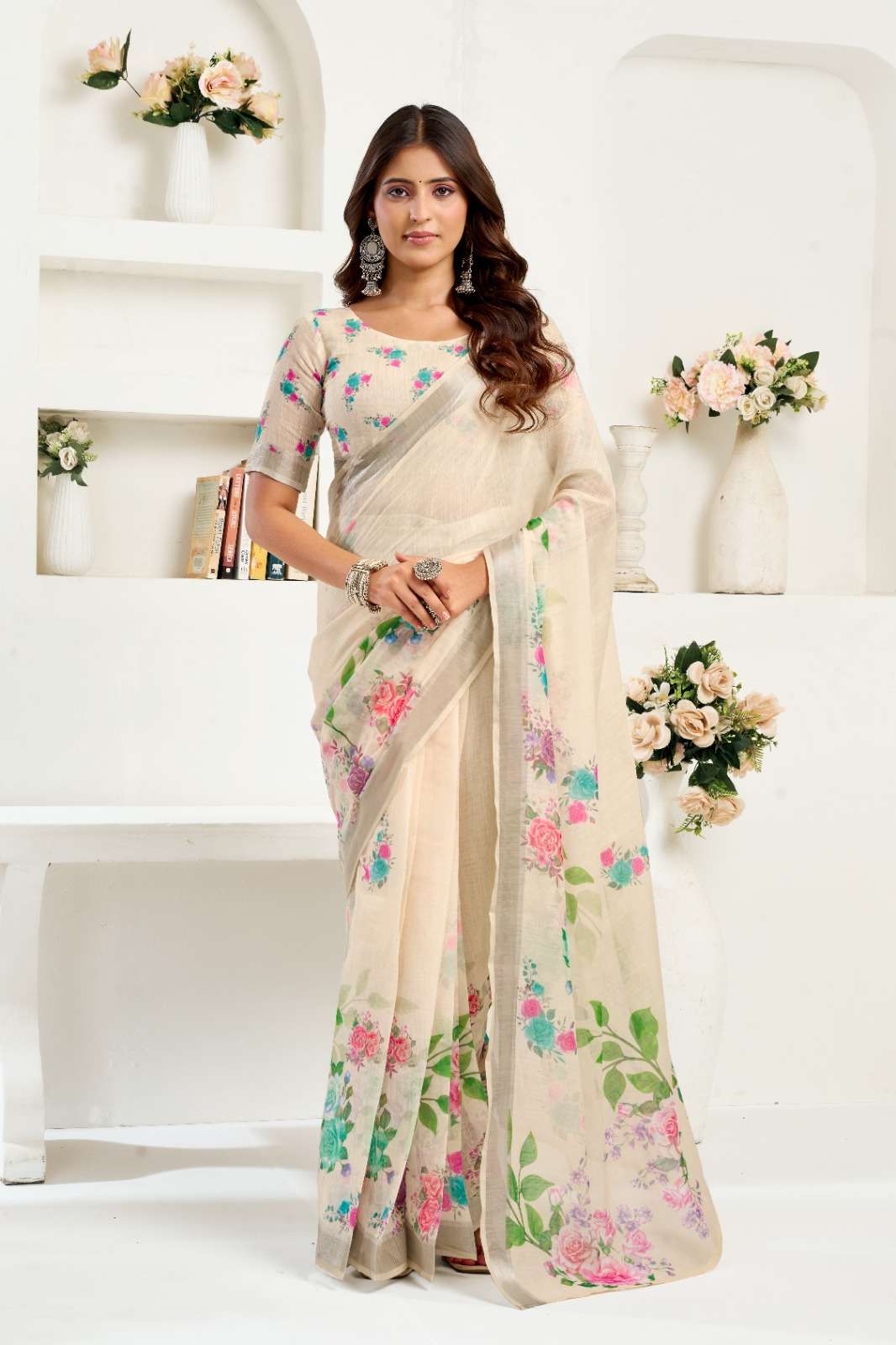 LINEN FABRIC BEAUTIFUL FLOWERS PRINTED READY TO WEAR SAREE NEW COLLECTION