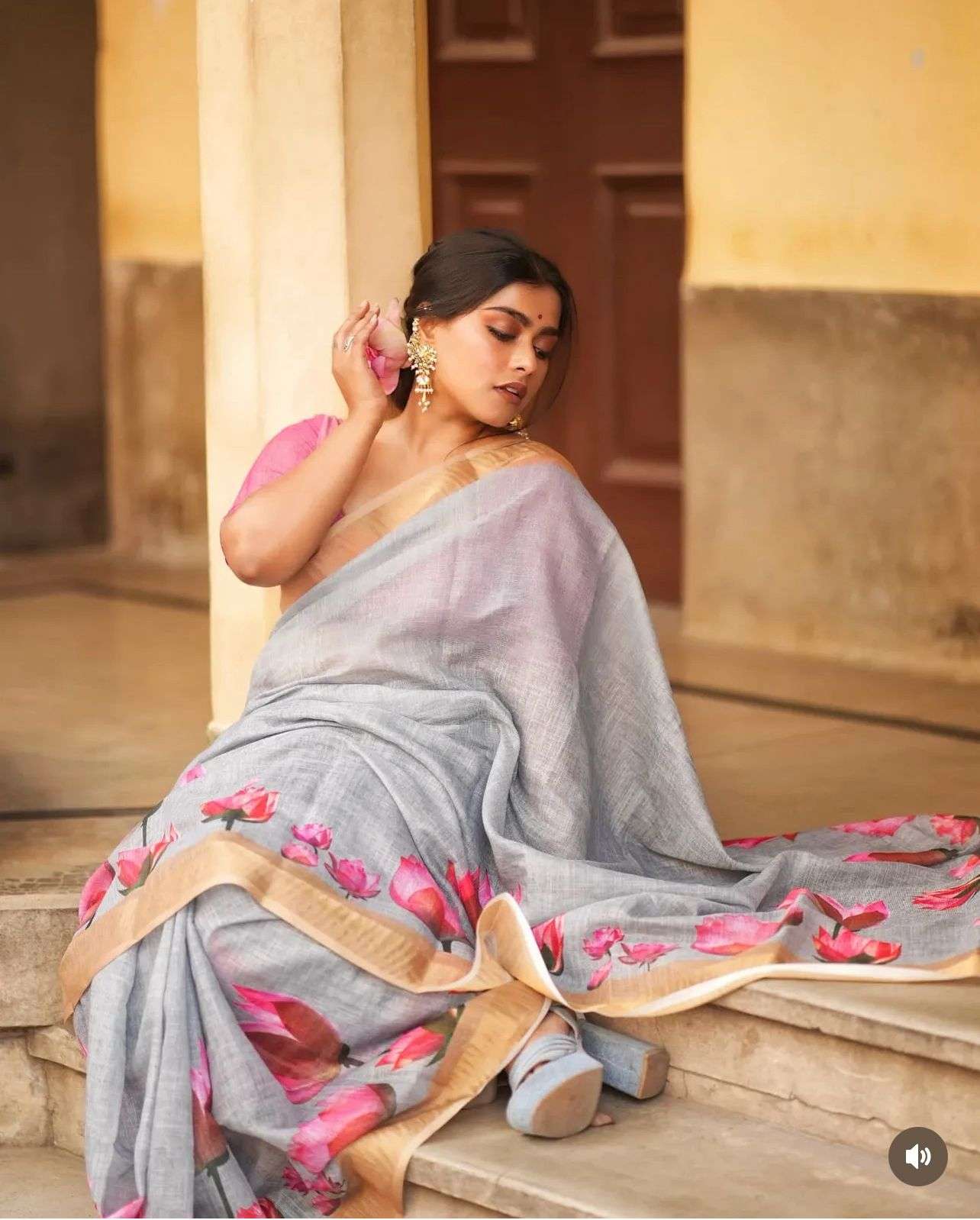 LINEN FABRIC DIGITAL PRINTED LIGHT WEIGHT SAREE BEST COLLECTION DF 257