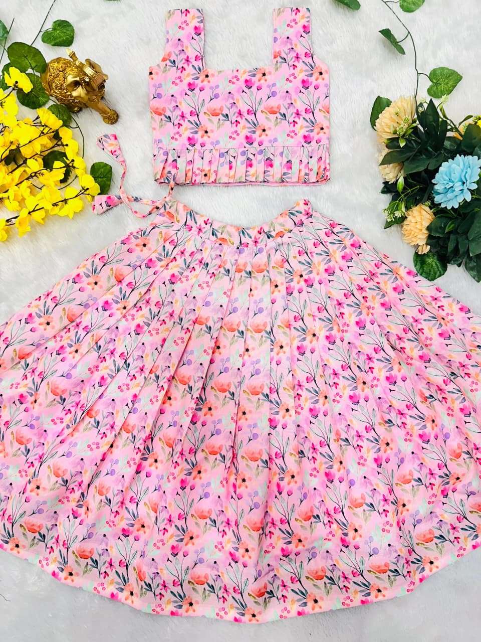 LITTLE BABY GIRL PINK SHADES COTTON FABRIC READY MADE SKIRT AND TOP BEST COLLECTION RKT