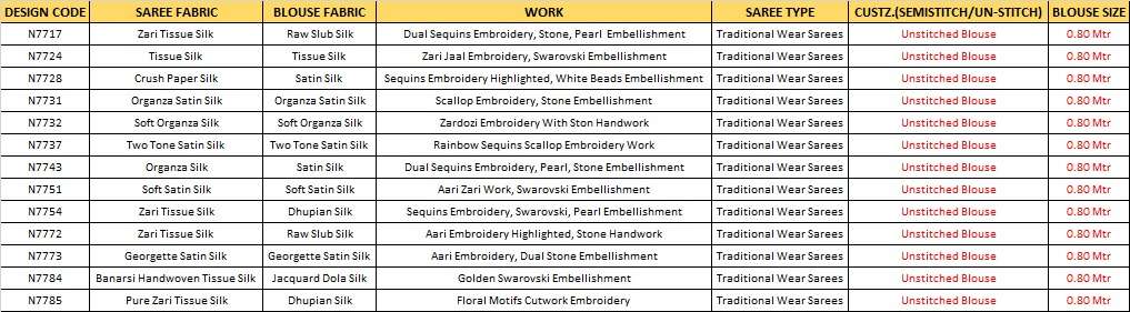 *PRICE :-* *N7717-3255/-* *N7724-1825/-* *N7728-4595/-* *N7731-1845/-* *N7732-4945/-* *N7737-1845/-* *N7743-3255/-* *N7751-2925/-* *N7754-3535/-* *N7772-3605/-* *N7773-3755/-* *N7784-2165/-* *N7785-2415/-* +*5% GST EXTRA*