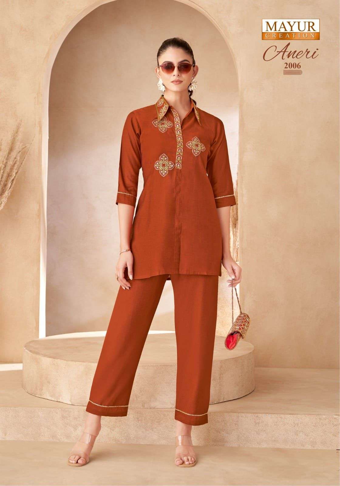 MAYUR ANERI VOL 2 SILK FABRIC EMBROIDERY DESIGN CORD SET PARTY WEAR RETAILER