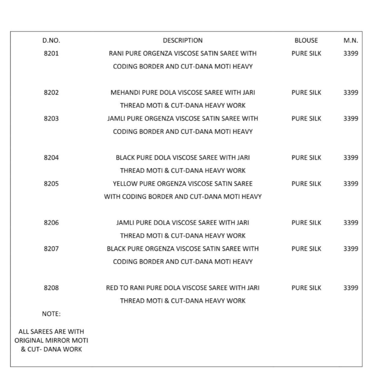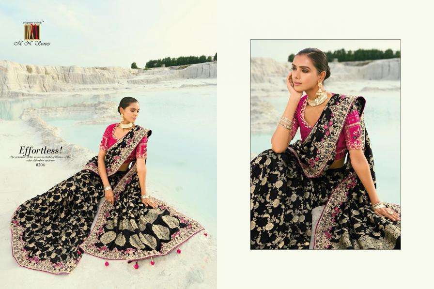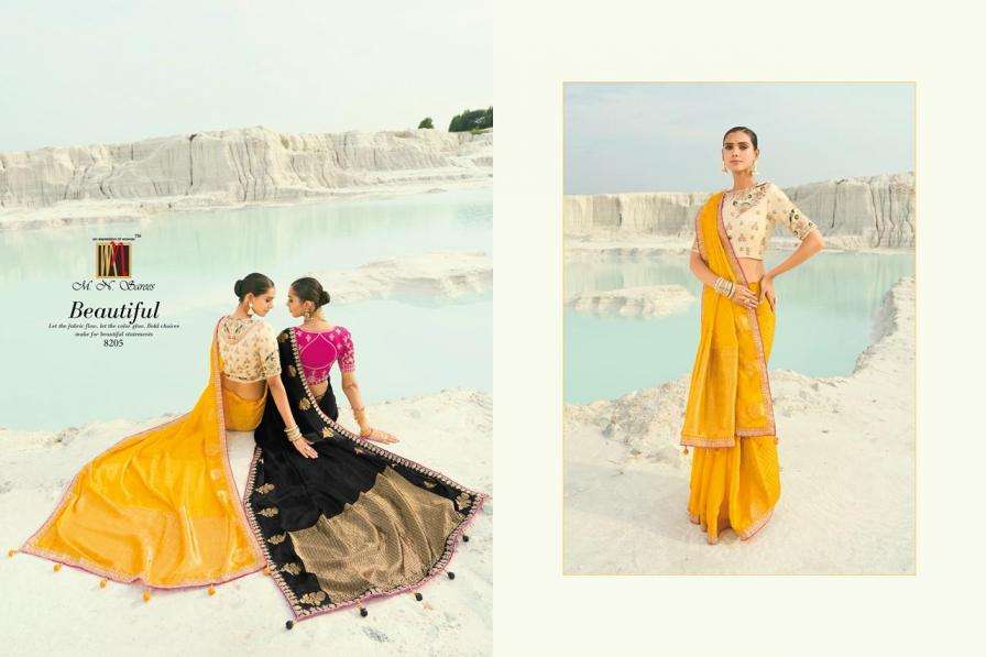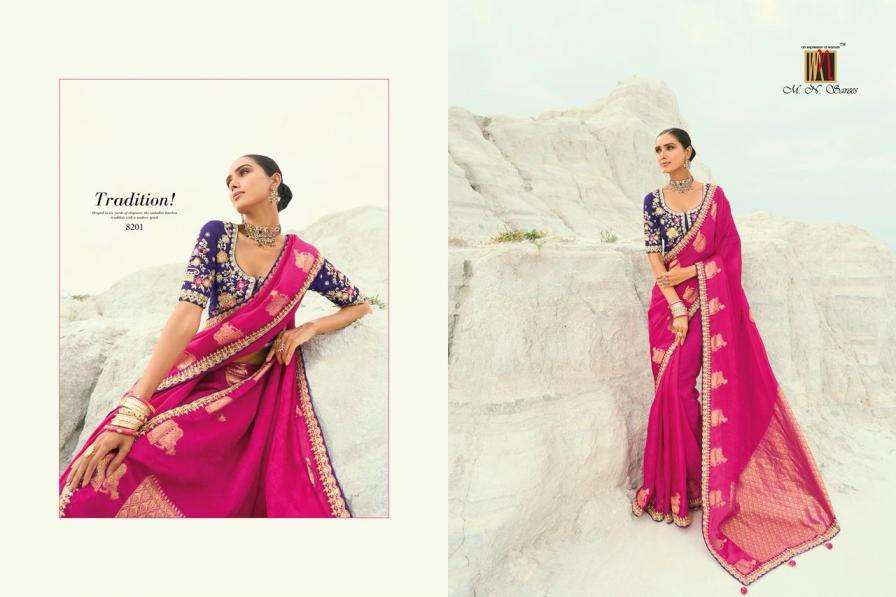 Buy Online MN Shahi Poshak Vol 7 Heavy Wedding Look Designer Saree Best Collection 8 Pcs of Full Catalogue at Wholesale Price. Looking for MN Shahi Poshak Vol 7 Heavy Wedding Look Designer Saree Best Collection Full Catalouge at Best Price? Buy Now MN Shahi Poshak Vol 7 Heavy Wedding Look Designer Saree Best Collection at Wholesale Rate of Rs 27192 with Total 8 Pcs from authroized dealer and supplier of Brand. Cost of Each piece is just only Rs 3399 which is very low and affordable price to resale the product in your retail store Ethnic Export is Surat based Wholesale Supplier & Dealer of Brand. Click on Brand name to Know more about Brand's products.Call or Whatsapp on +91-9825759366 for booking or enquiry
