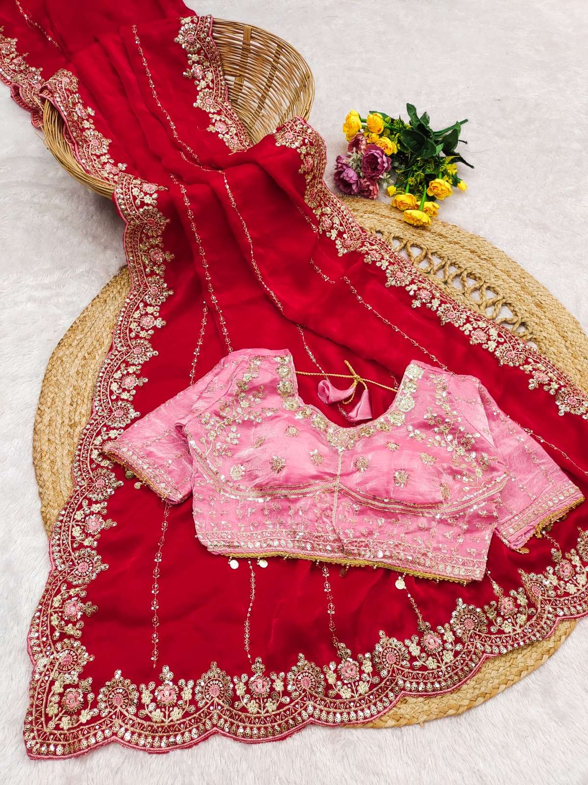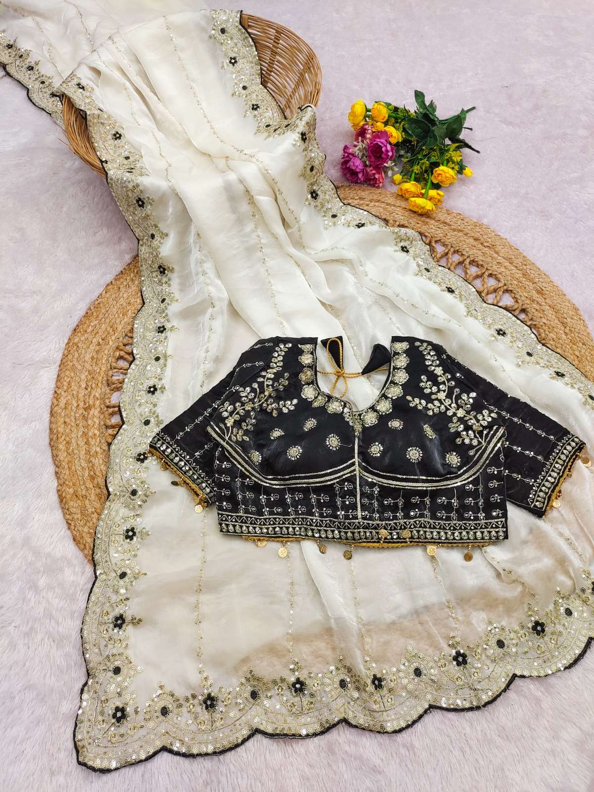MONIKA SATIN SILK FABRIC EMBROIDERY WORK BORDER PARTY WEAR LOOK SAREE BEST WHOLESALE RATE