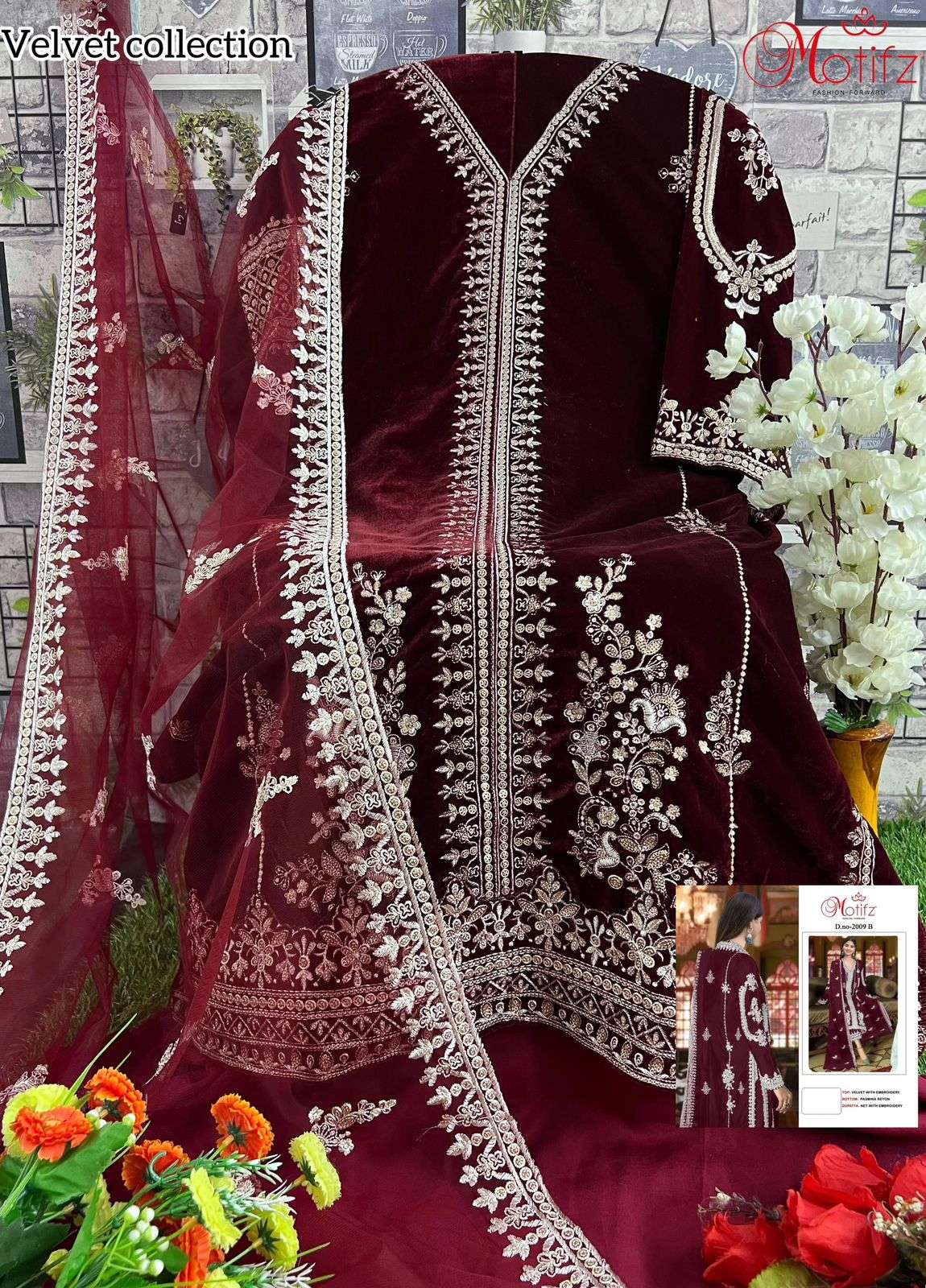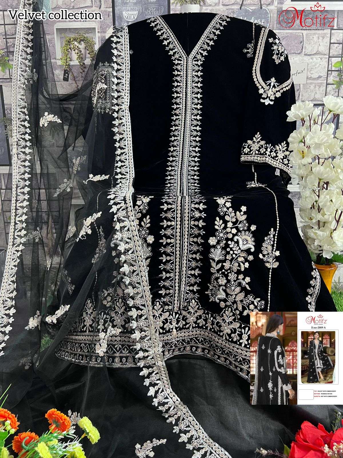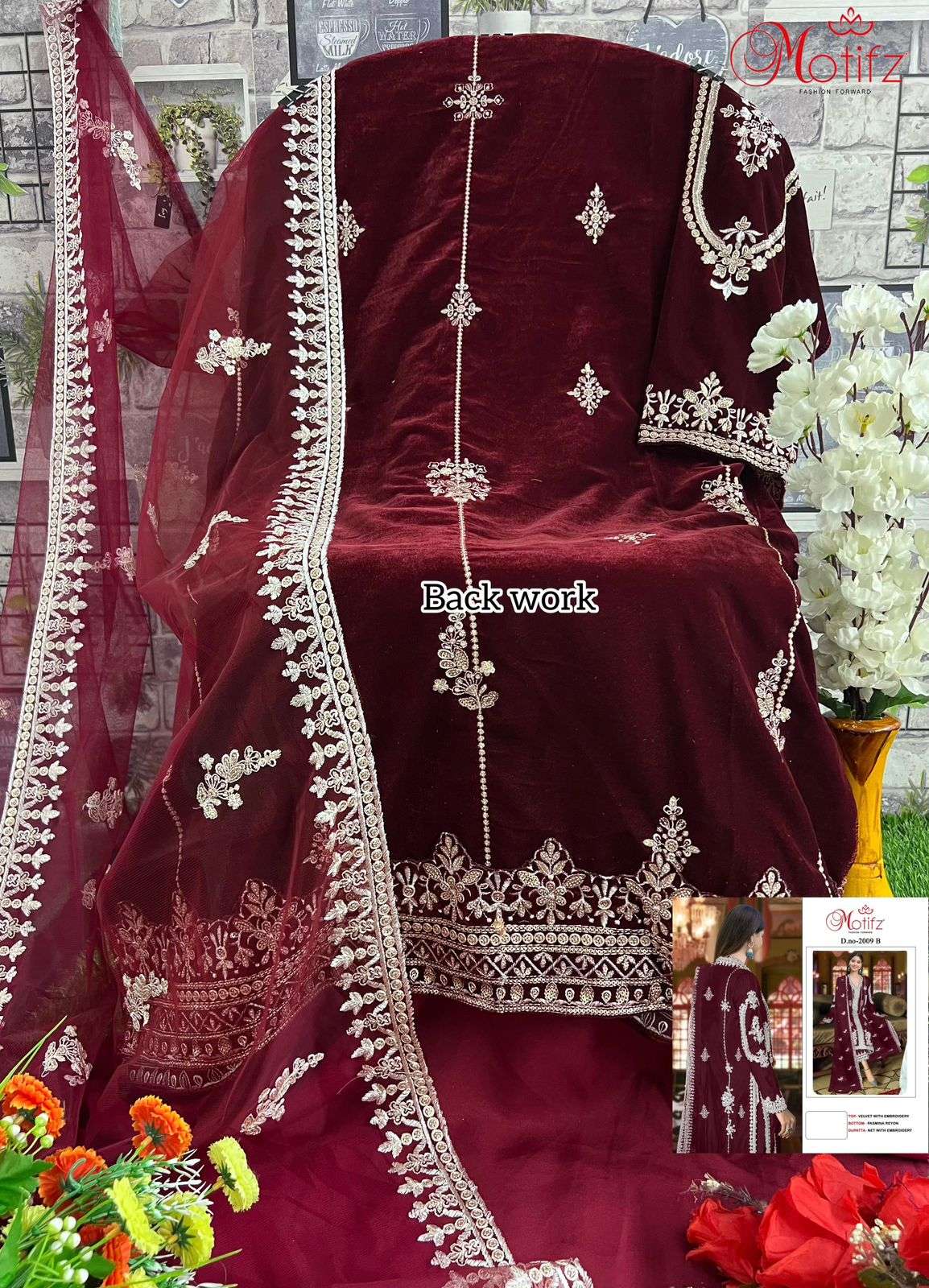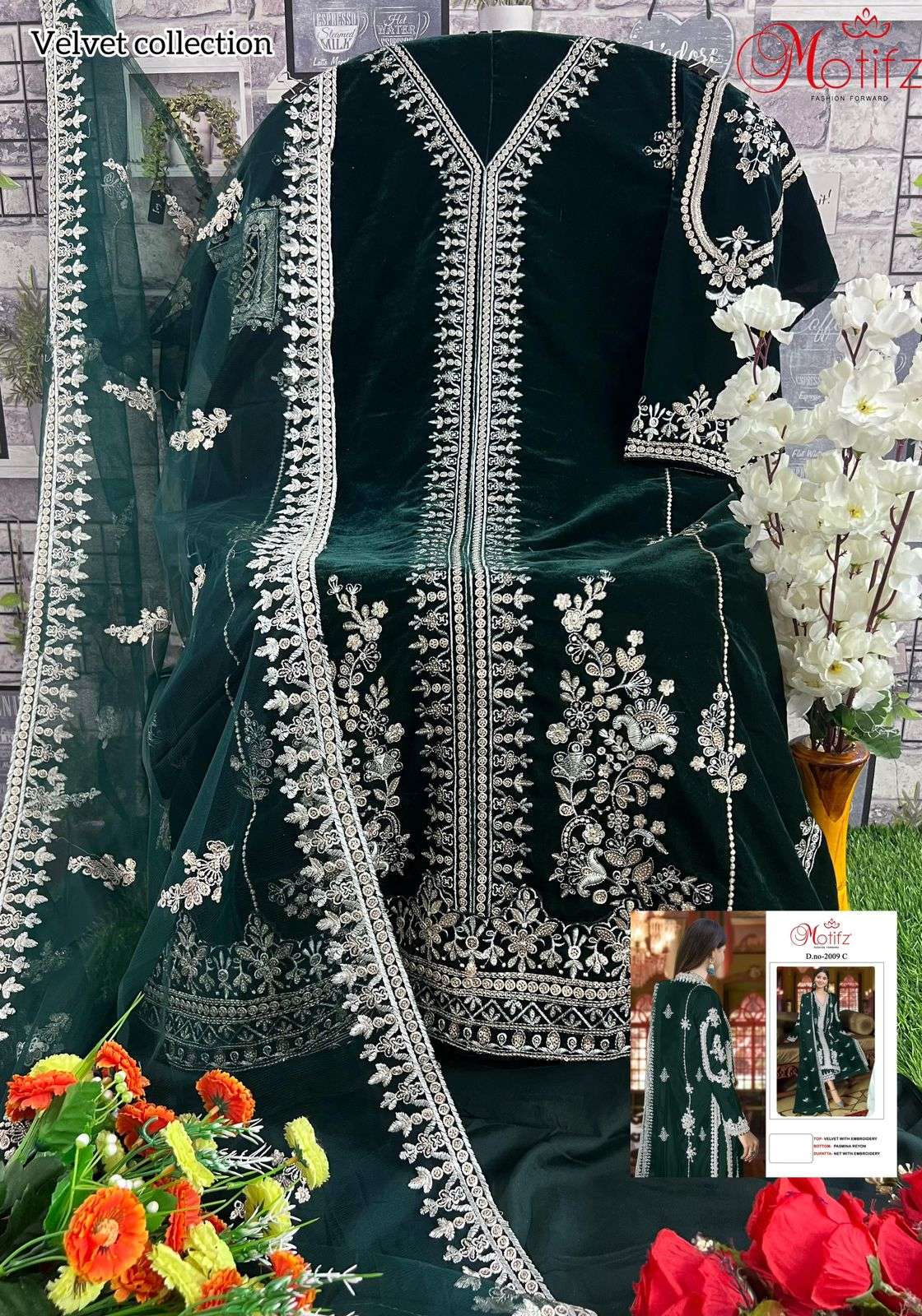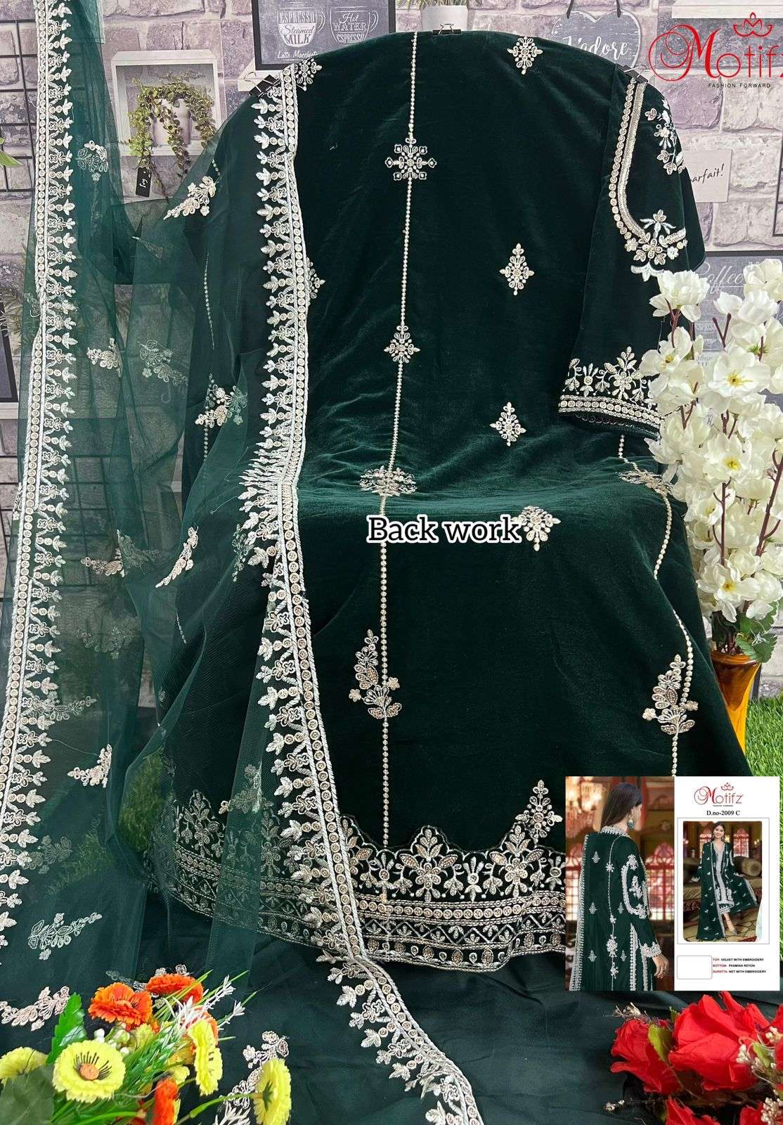 MOTIFZ 2009 WINTER WEDDING WEAR VELVET EMBROIDERY WORK PAKISTANI SUIT EXPORT