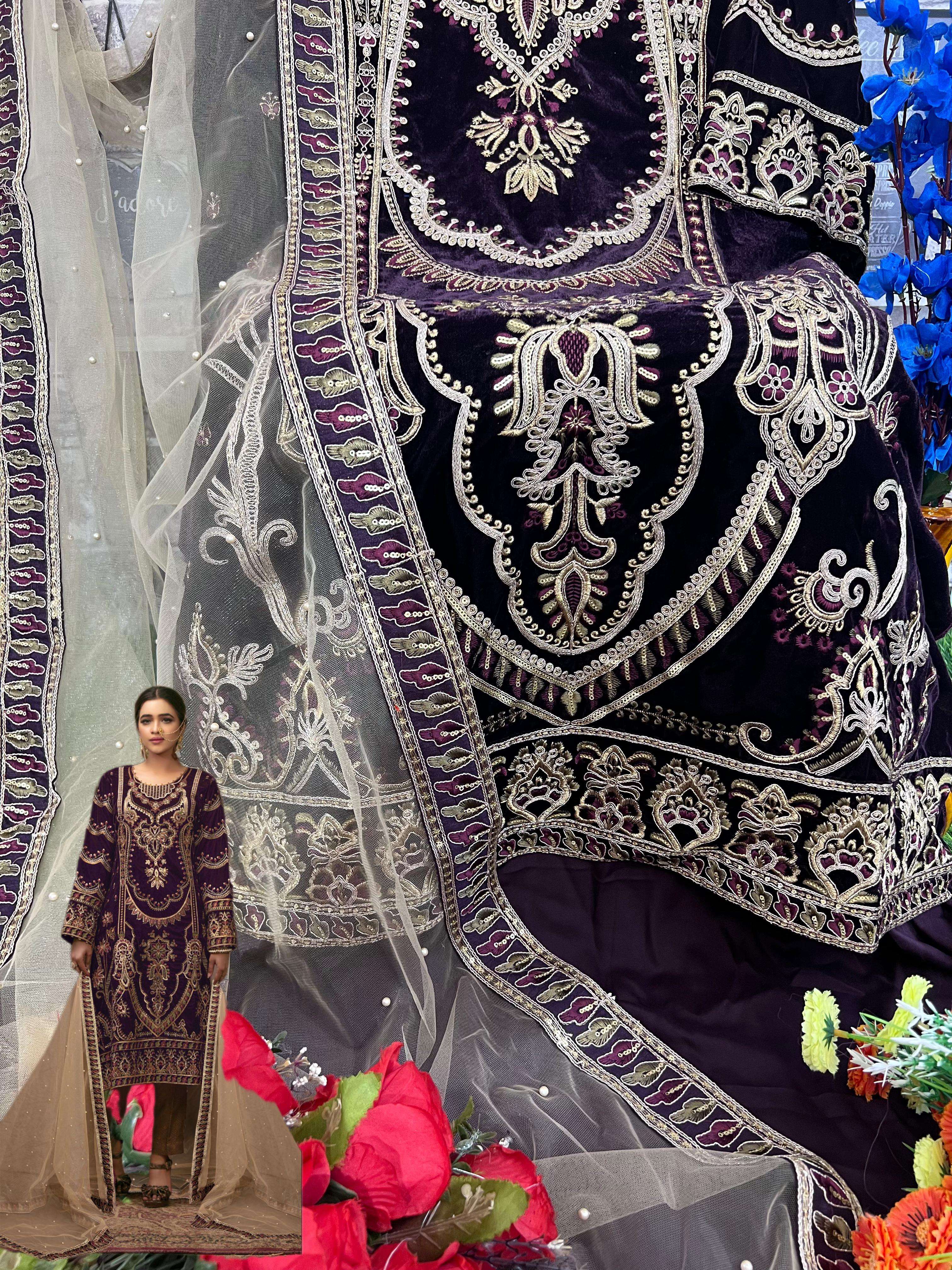MOTIFZ 381 VELVET WITH EMBROIDERY WORK PAKISTANI SALWAR KAMEEZ COLLECTION AT BEST RATE
