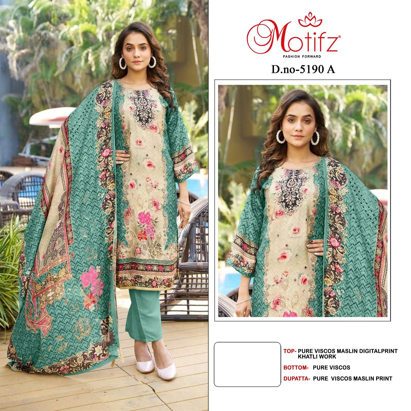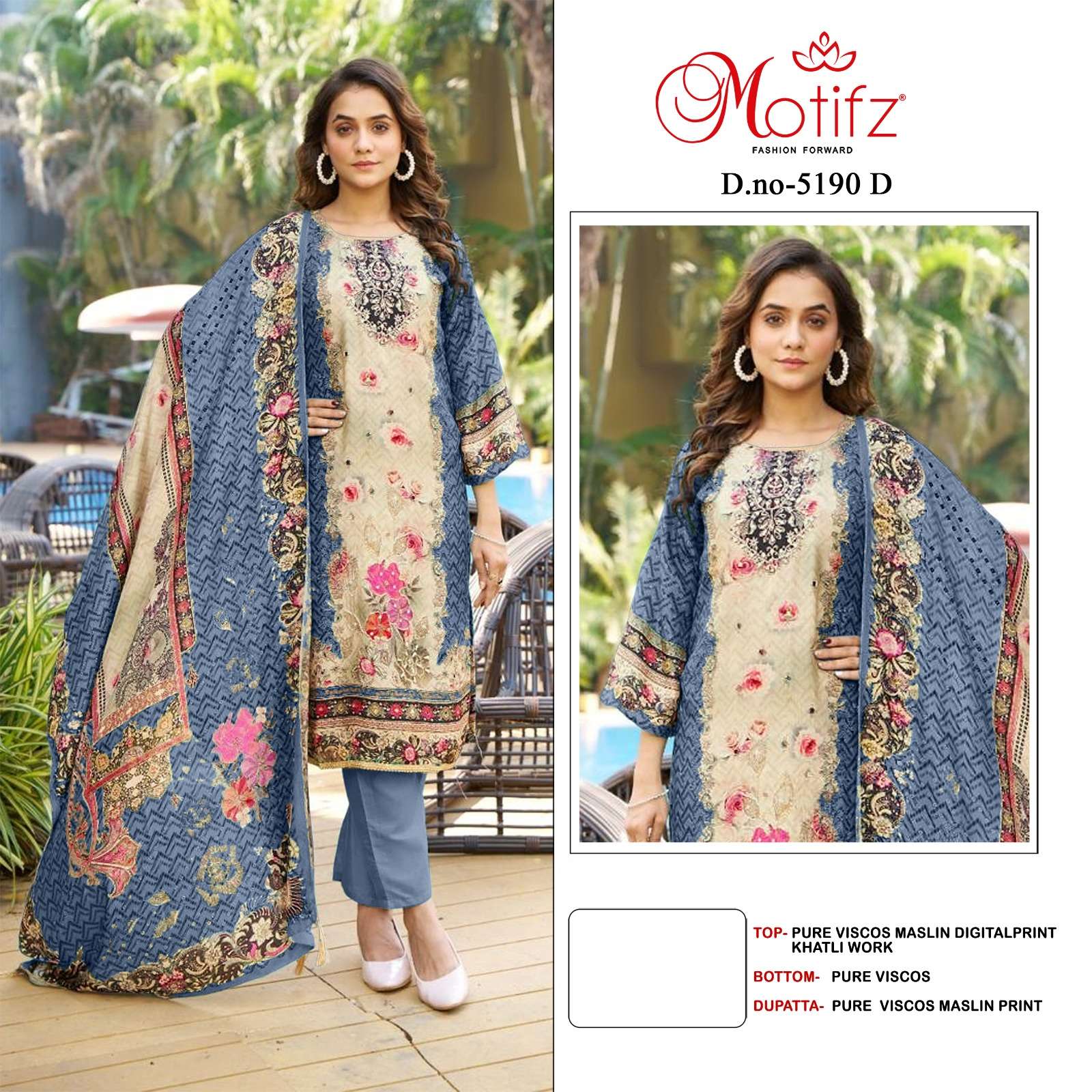 Buy Online MOTIFZ 5190 VISCOSE MATERIAL DIGITAL PRINT WOMEN TRADITIONAL SUIT EXPORT 4 Pcs of Full Catalogue at Wholesale Price. Looking for MOTIFZ 5190 VISCOSE MATERIAL DIGITAL PRINT WOMEN TRADITIONAL SUIT EXPORT Full Catalouge at Best Price? Buy Now MOTIFZ 5190 VISCOSE MATERIAL DIGITAL PRINT WOMEN TRADITIONAL SUIT EXPORT at Wholesale Rate of Rs 5000 with Total 4 Pcs from authroized dealer and supplier of MOTIFZ Brand. Cost of Each piece is just only Rs 1250 which is very low and affordable price to resale the product in your retail store Ethnic Export is Surat based Wholesale Supplier & Dealer of MOTIFZ Brand. Click on Brand name to Know more about MOTIFZ Brand's products.Call or Whatsapp on +91-9825759366 for booking or enquiry
