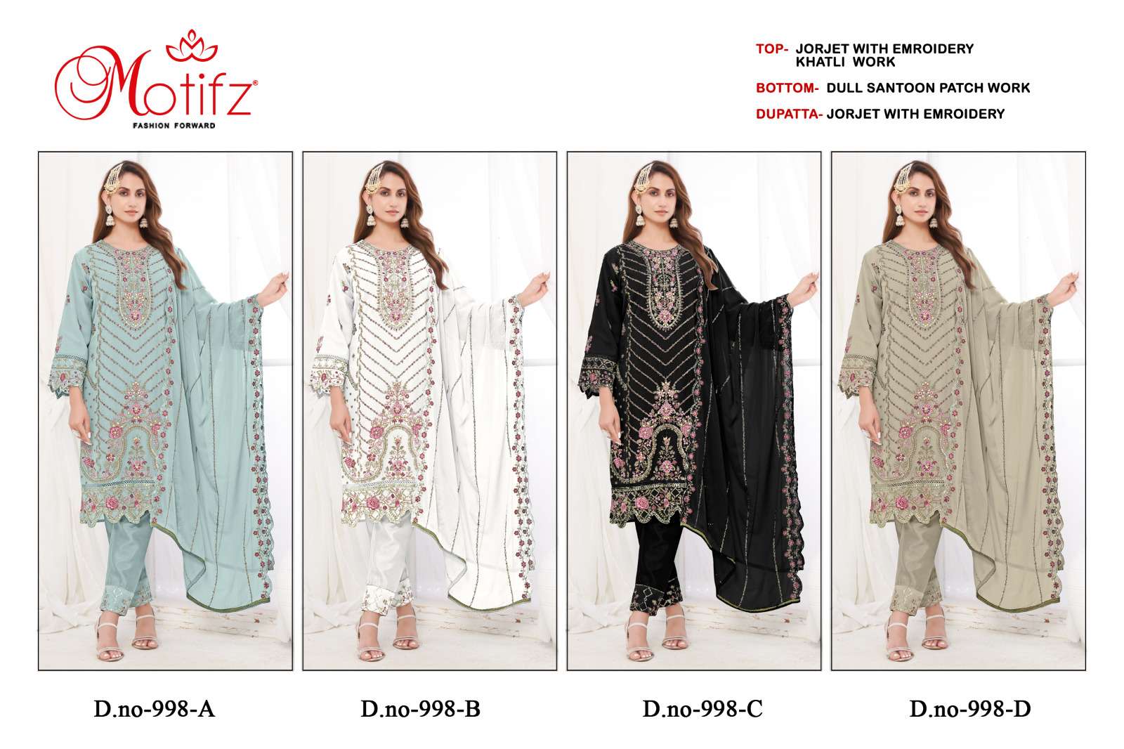 Buy Online MOTIFZ 998 EID FESTIVAL SPECIAL DESIGNER HEAVY WORK SUIT COLLECTION TRADER INDIA 4 Pcs of Full Catalogue at Wholesale Price. Looking for MOTIFZ 998 EID FESTIVAL SPECIAL DESIGNER HEAVY WORK SUIT COLLECTION TRADER INDIA Full Catalouge at Best Price? Buy Now MOTIFZ 998 EID FESTIVAL SPECIAL DESIGNER HEAVY WORK SUIT COLLECTION TRADER INDIA at Wholesale Rate of Rs 5196 with Total 4 Pcs from authroized dealer and supplier of MOTIFZ Brand. Cost of Each piece is just only Rs 1299 which is very low and affordable price to resale the product in your retail store Ethnic Export is Surat based Wholesale Supplier & Dealer of MOTIFZ Brand. Click on Brand name to Know more about MOTIFZ Brand's products.Call or Whatsapp on +91-9825759366 for booking or enquiry
