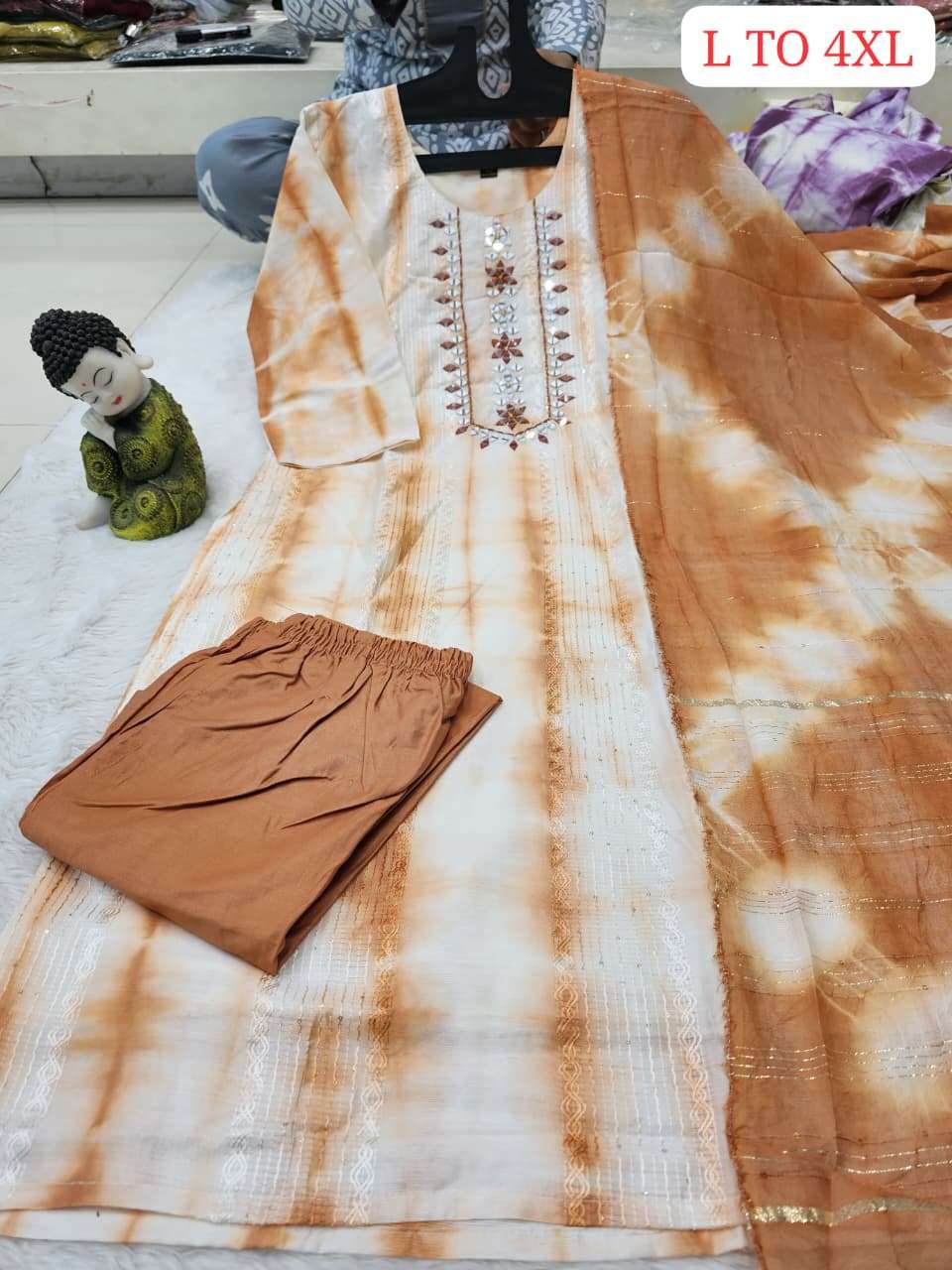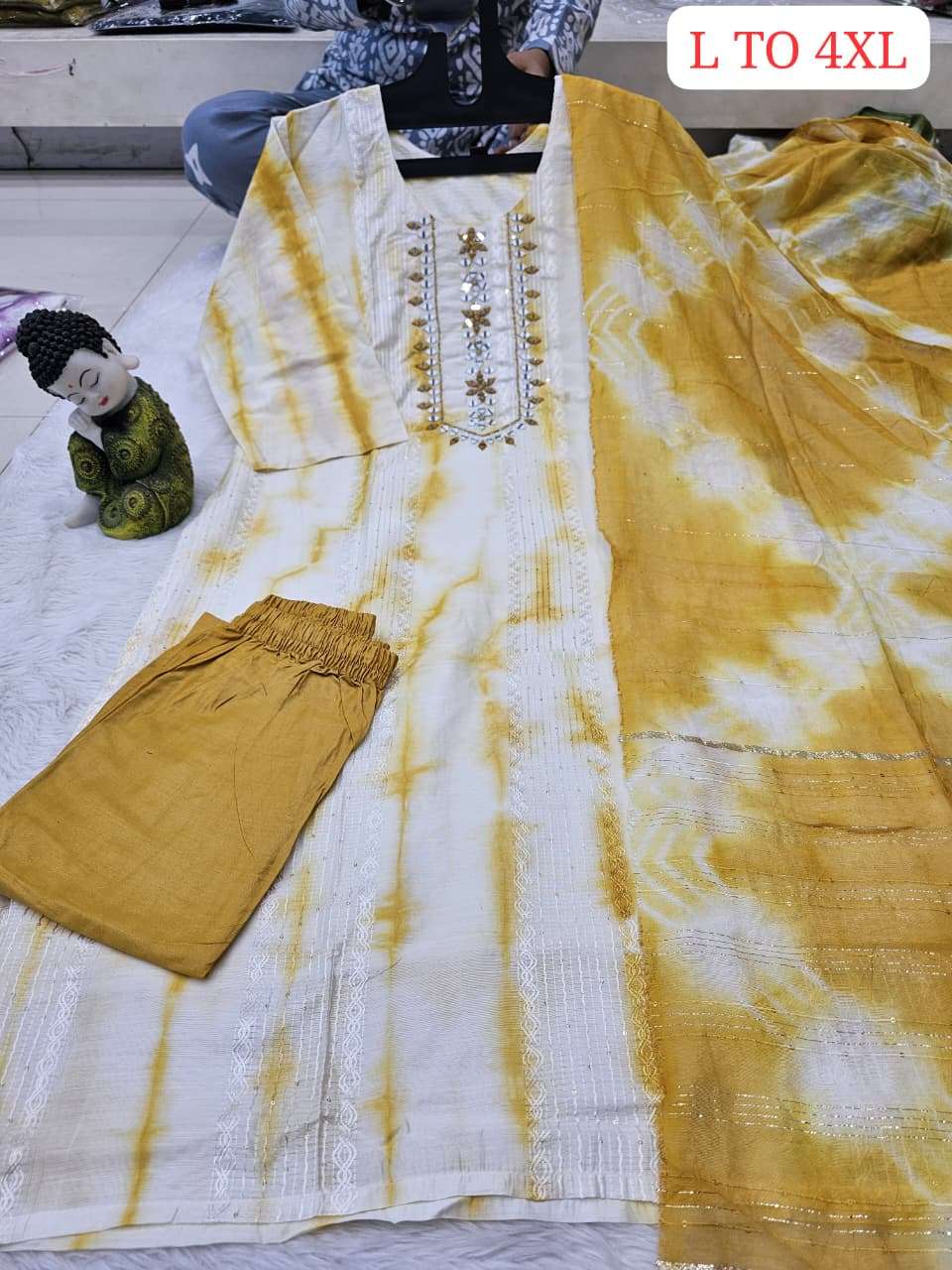 | Other Details | SIZE- L to 4xl Mulberry silk fabric Pure Batiq Allover Hand Work Top & Bottom & Dupatta SINGLE ALSO AVA |