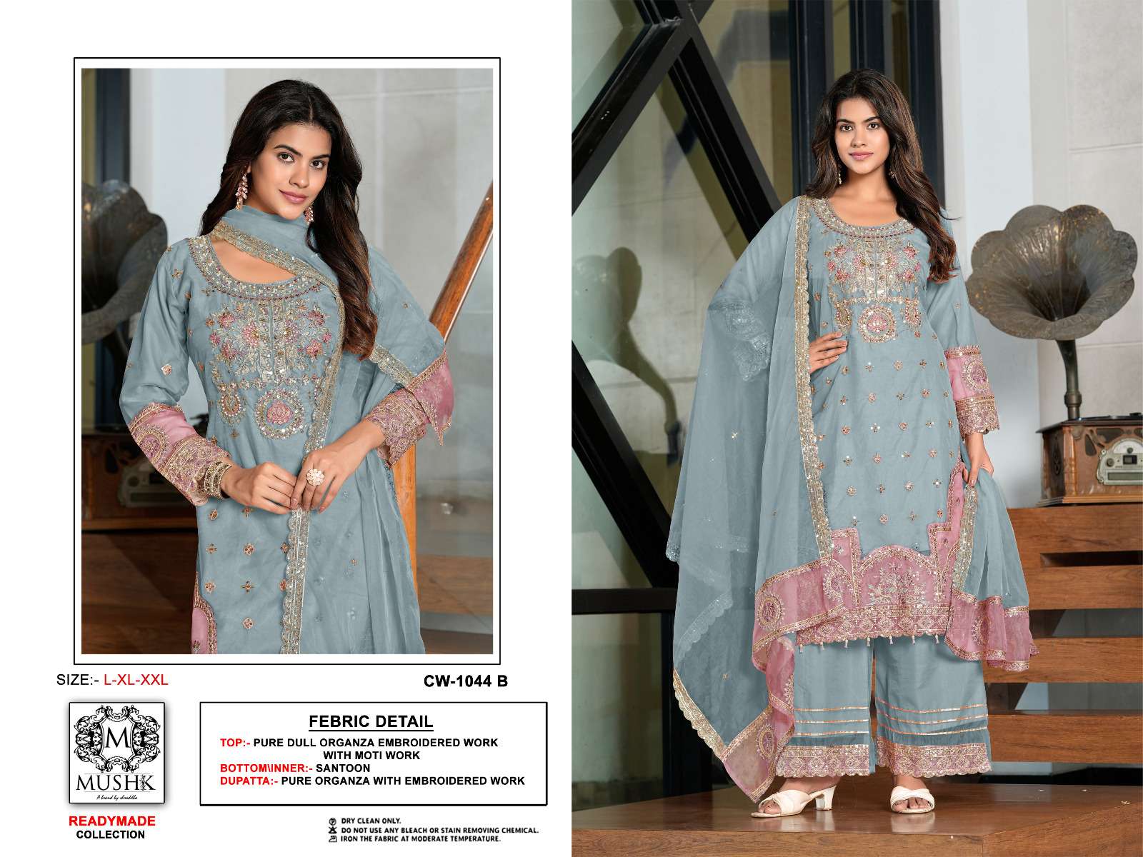 MUSHK CW 1044 SHIMMER ORGANZA EMBROIDERY WORK KURTI PALAZZO SUIT FOR WEDDIGN CLOTH STYLE
