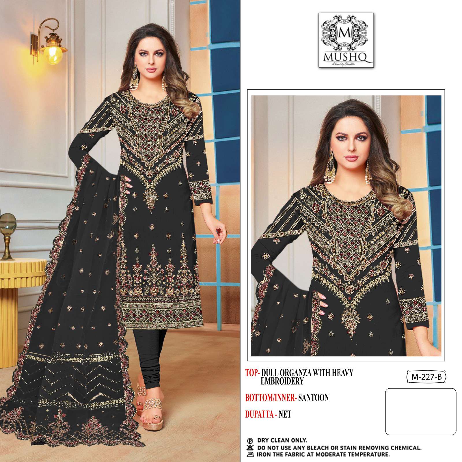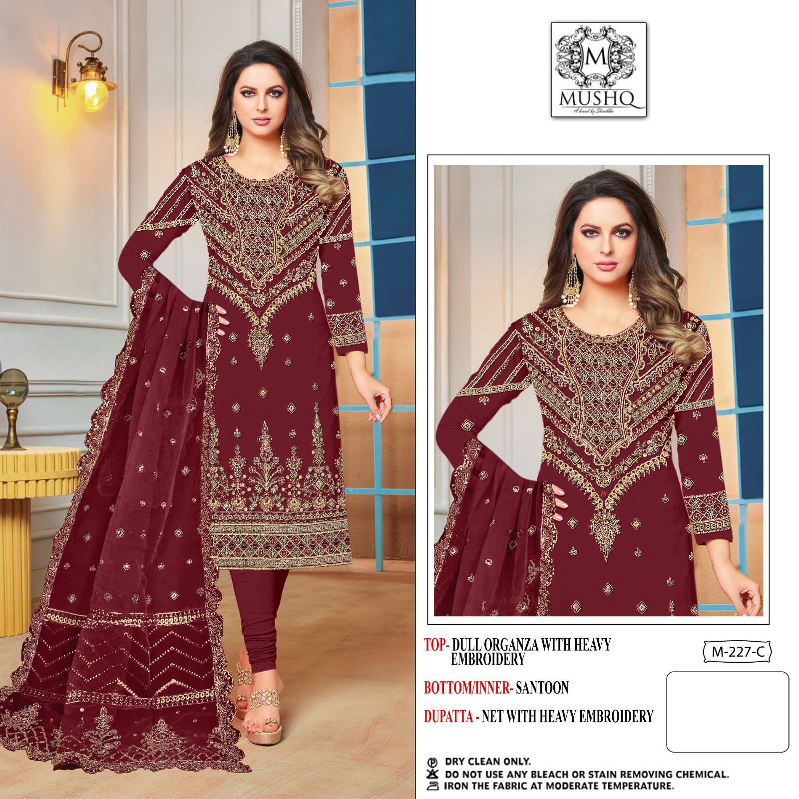 D NO :- M-227 ABCD Dupatta :- PURE NET WITH EMBROIDERY WORK INNER:- SANTOON Bottom :- SANTOON WITH WORK SINGLE ALSO AVA |