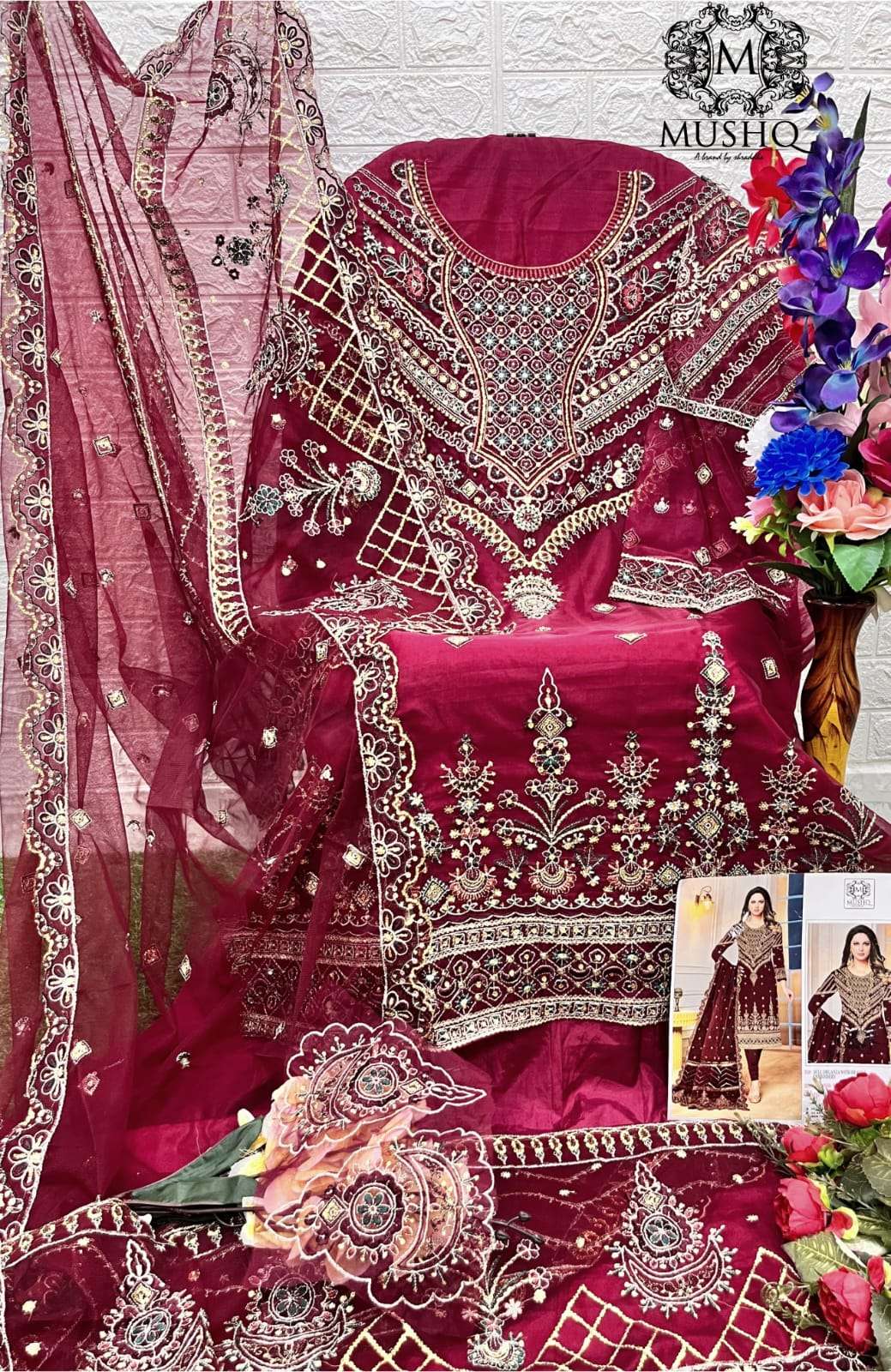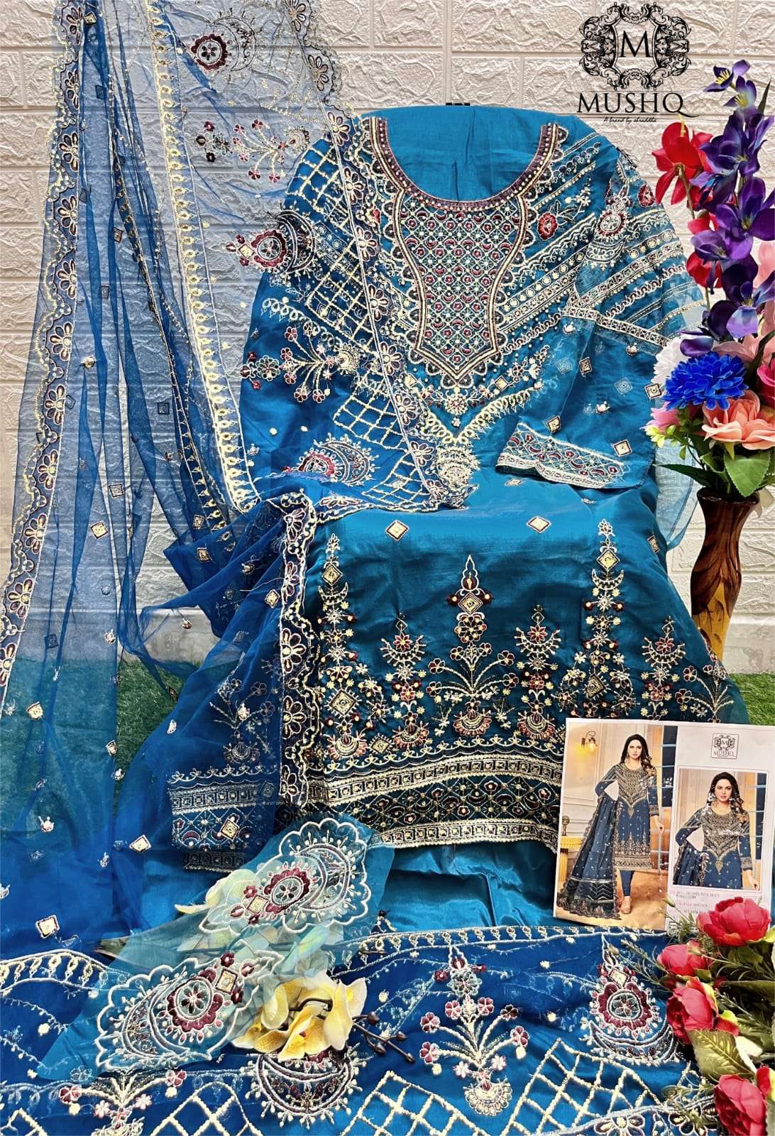 Title | MUSHQ M 277 WEDDING & EID SPECIAL ORGANZA FABRIC HEAVY WORK PAKISTANI SUIT WEAR |