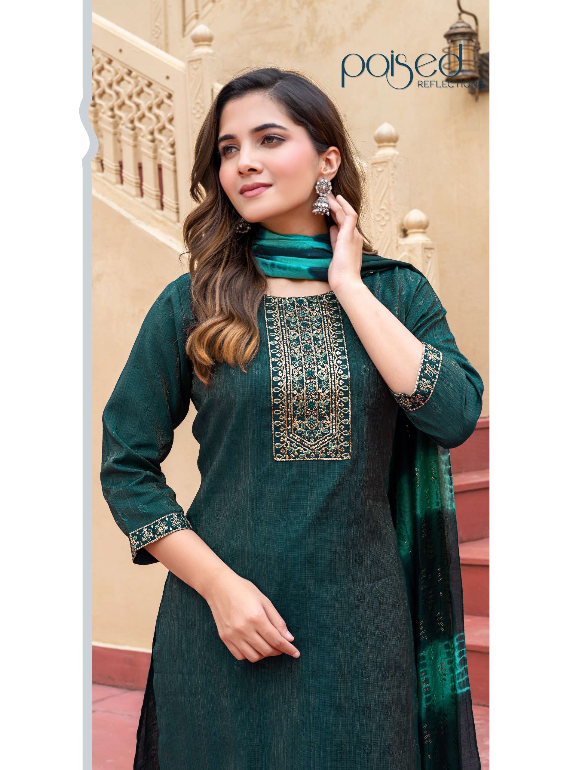 👗 TOP : PREMIUM QUALITY HEAVY VERTICAN SHIMMER DOBBY (BUTTI) WITH SLEEVES LOCK and EMBROIDERY ON FRONT, SLEEVE & DAMAN🪡👖 BOTTOM : PREMIUM QUALITY VERTICAN STRAIGHT PANT WITH INTERLOCK & EXCLUSIVE POCKET.✨️ 🧣 DUPATTA: CHANDERI DUPATTA WITH FANCY SEQUENCE IMMERSED IN TIE-DIE.🌟