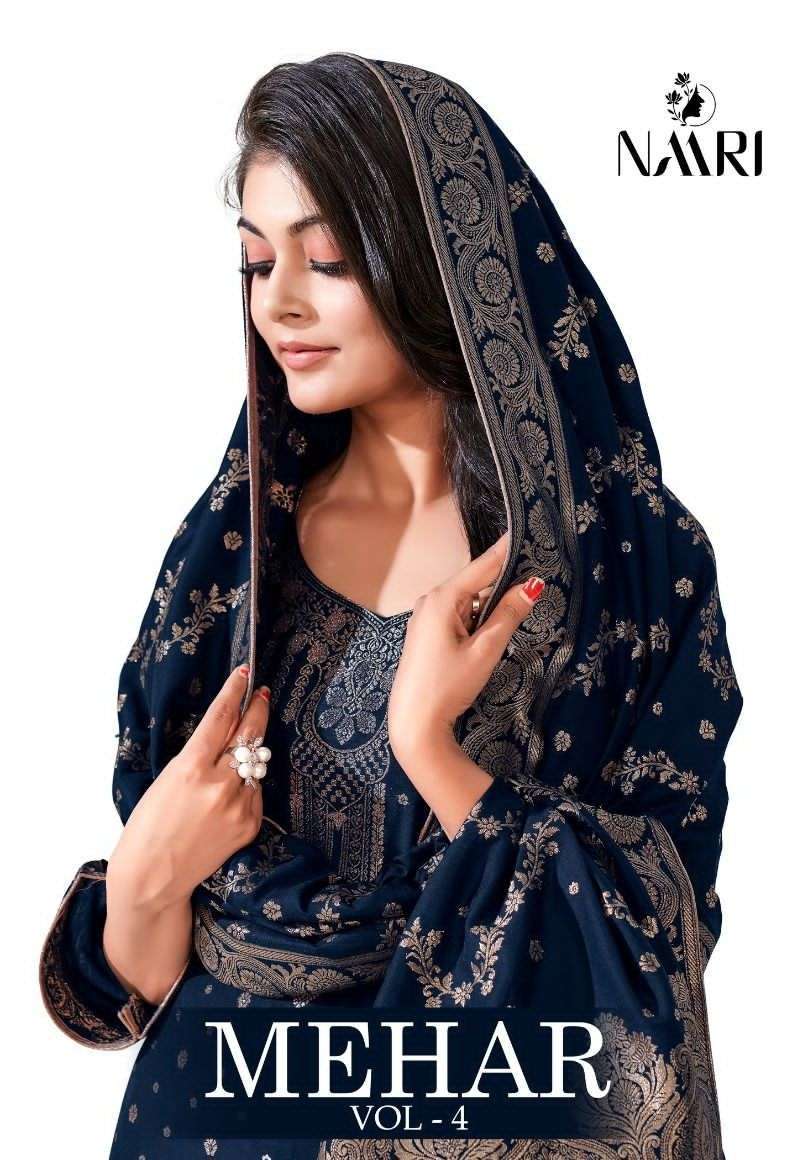 | Title | NAARI MEHAR VOL 4 PURE MUSLIN JACQUARD SALWAR SUITS AT WHOLESALE PRICE |