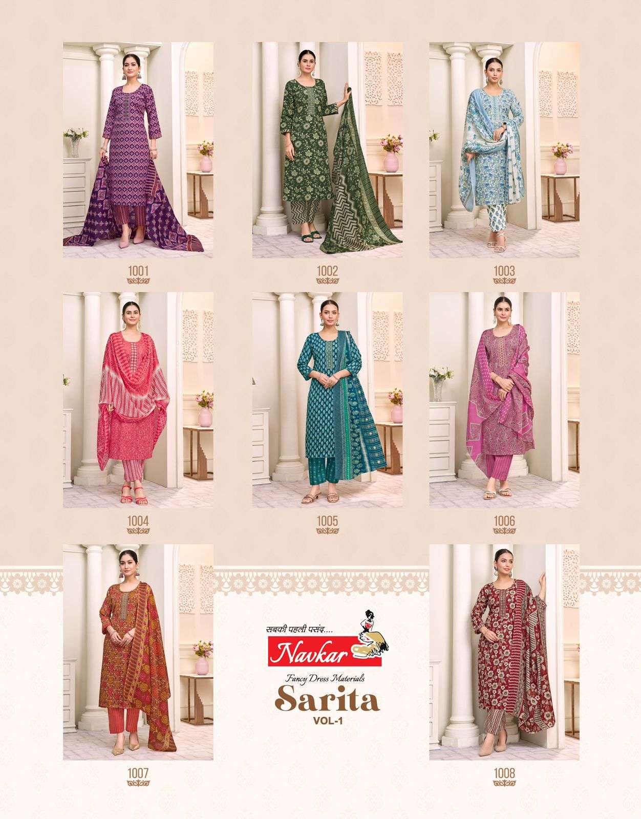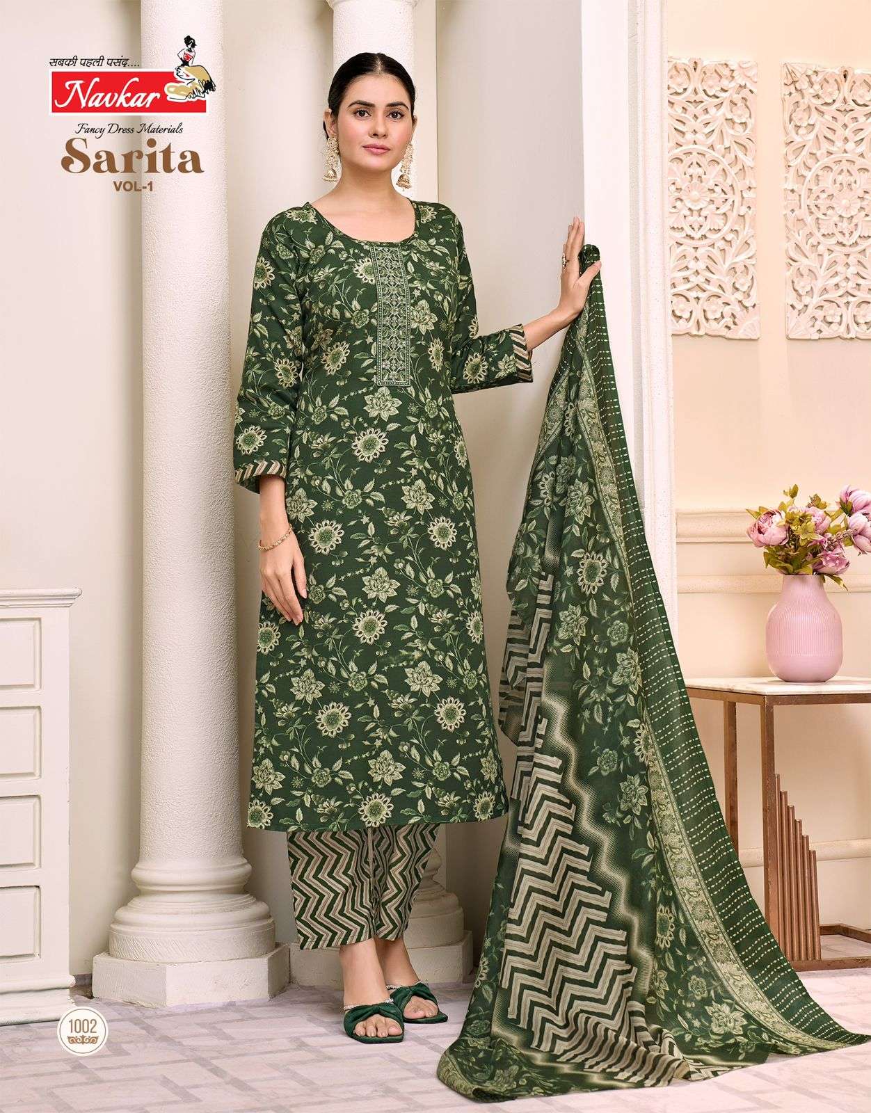 Buy Online NAVKAR SARITA VOL 1 MALESIYA COTTON SALWAR SUIT TO COMFORT DAILY WEAR TRADER 8 Pcs of Full Catalogue at Wholesale Price. Looking for NAVKAR SARITA VOL 1 MALESIYA COTTON SALWAR SUIT TO COMFORT DAILY WEAR TRADER Full Catalouge at Best Price? Buy Now NAVKAR SARITA VOL 1 MALESIYA COTTON SALWAR SUIT TO COMFORT DAILY WEAR TRADER at Wholesale Rate of Rs 2960 with Total 8 Pcs from authroized dealer and supplier of Navkar suits Brand. Cost of Each piece is just only Rs 370 which is very low and affordable price to resale the product in your retail store Ethnic Export is Surat based Wholesale Supplier & Dealer of Navkar suits Brand. Click on Brand name to Know more about Navkar suits Brand's products.Call or Whatsapp on +91-9825759366 for booking or enquiry
