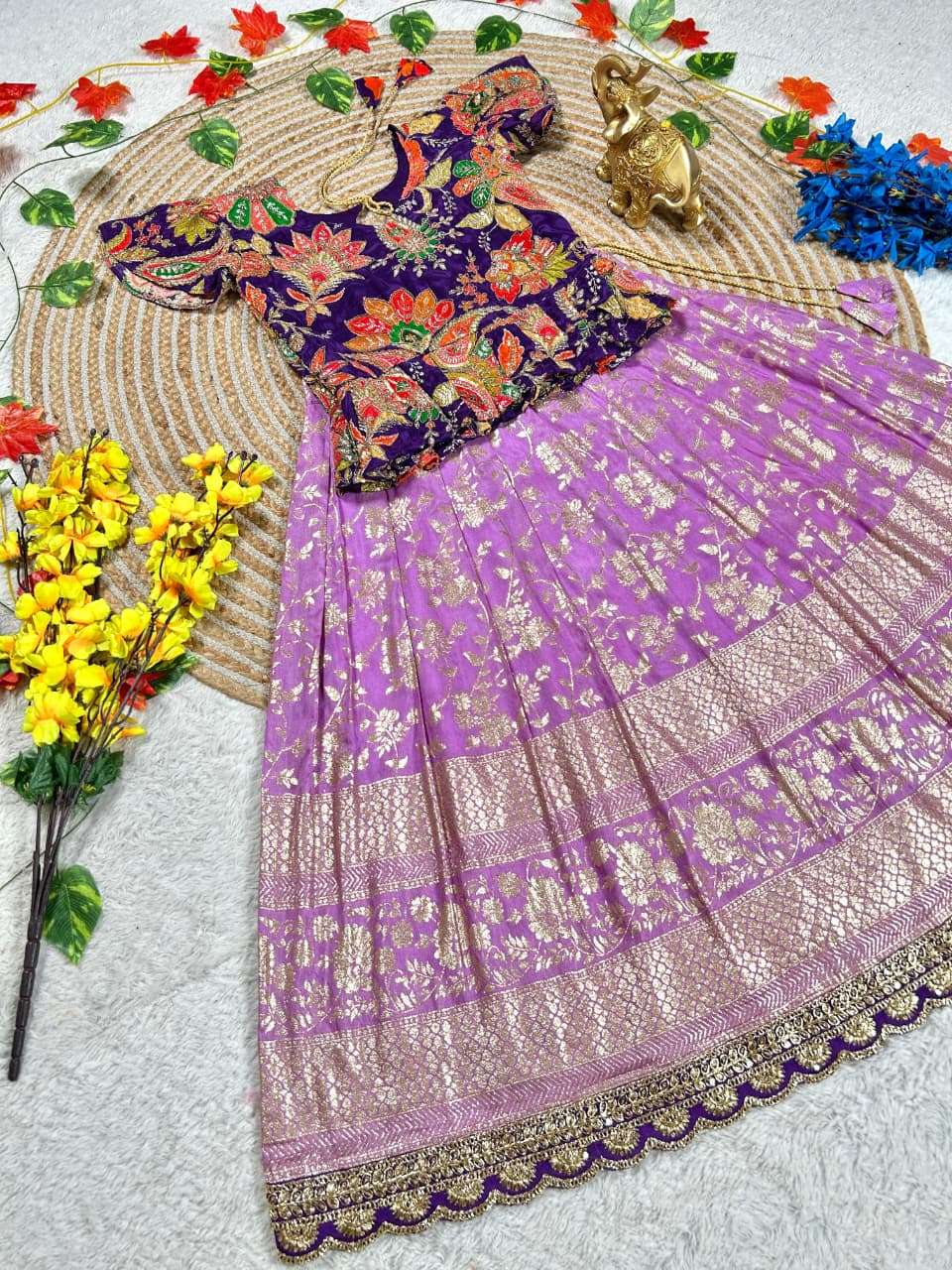 occasions Special Crepe Silk Fabric Golden Zari Weaving Designer Pattu Style Kids Lehenga Choli Best Collection RKT