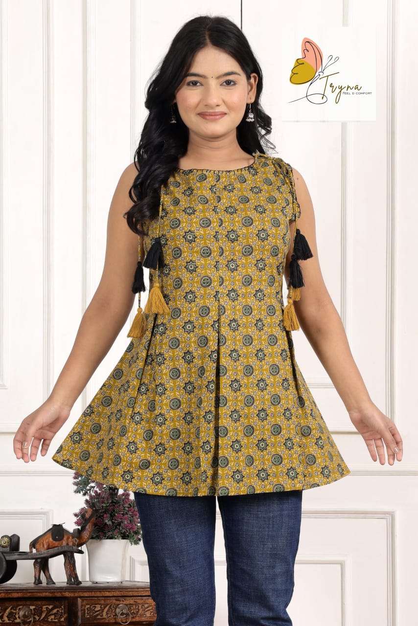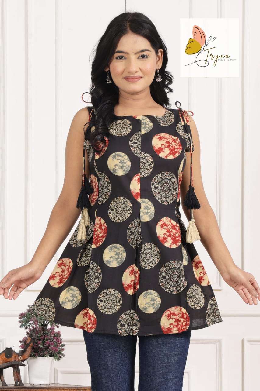 | Title | OFFICE AND COLLEGE WEAR COTTON NO SLEEVESS SHORT KURTI TOP COLLECTION FF |