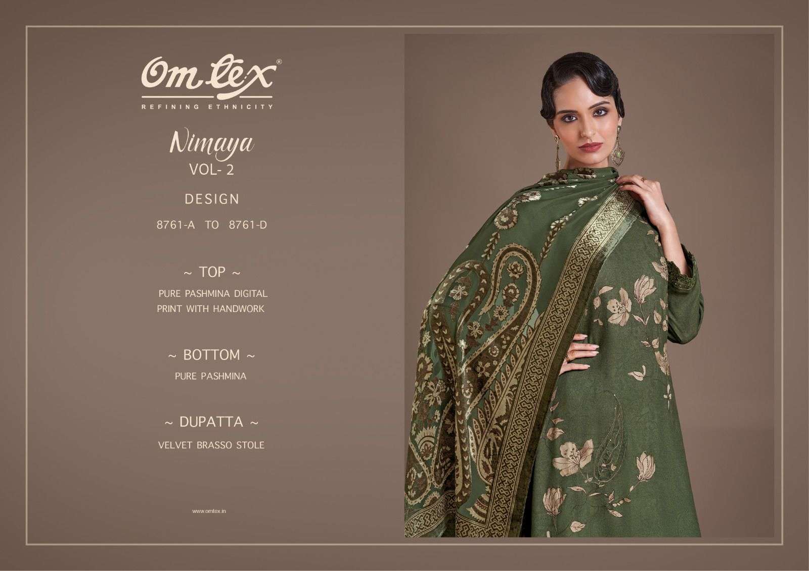 Title | OM TEX NIMAYA VOL 2 PASHMINA DIGITAL HANDWORK UNSTITCH SUIT WHOLESALER |