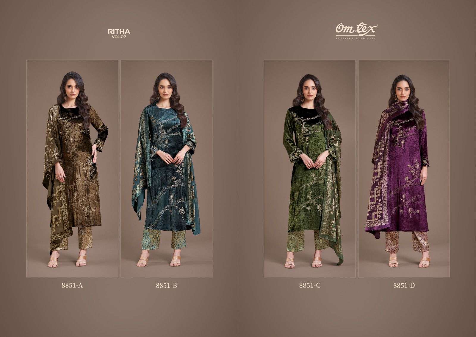 Title | OM TEX RITHA VOL 27 HIGH BRAND RICH PARTY WEA VELVET WITH EMBROIDERY SUIT ETHNIC BOUTIQUE |