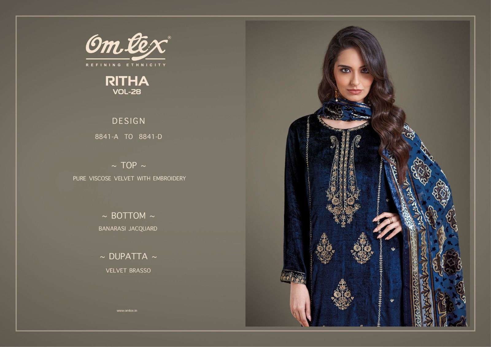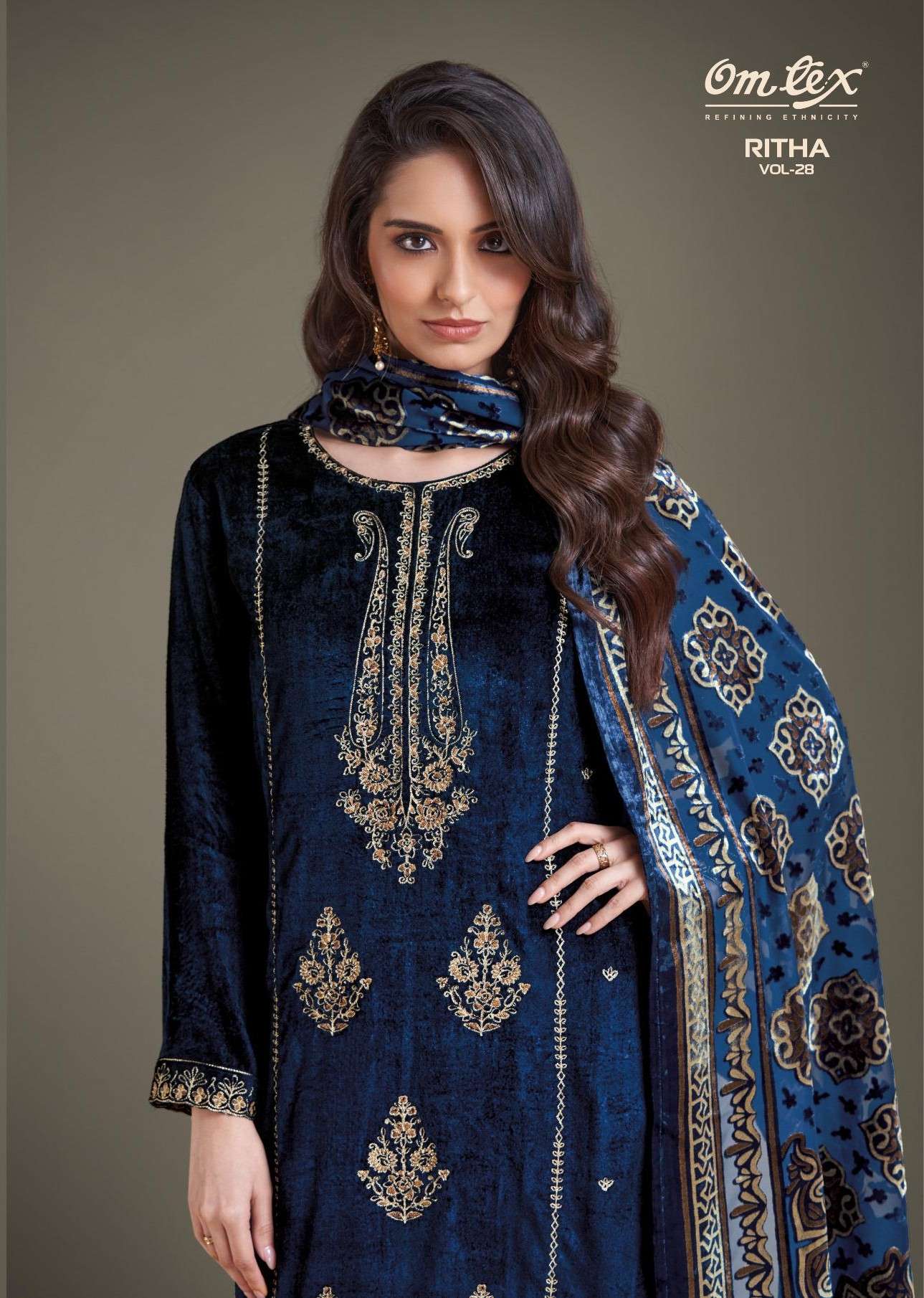 Title | OM TEX RITHA VOL 28 VISCOSE VELVET WITH EMBROIDERY DESIGNER SUIT INDIAN STORE |
