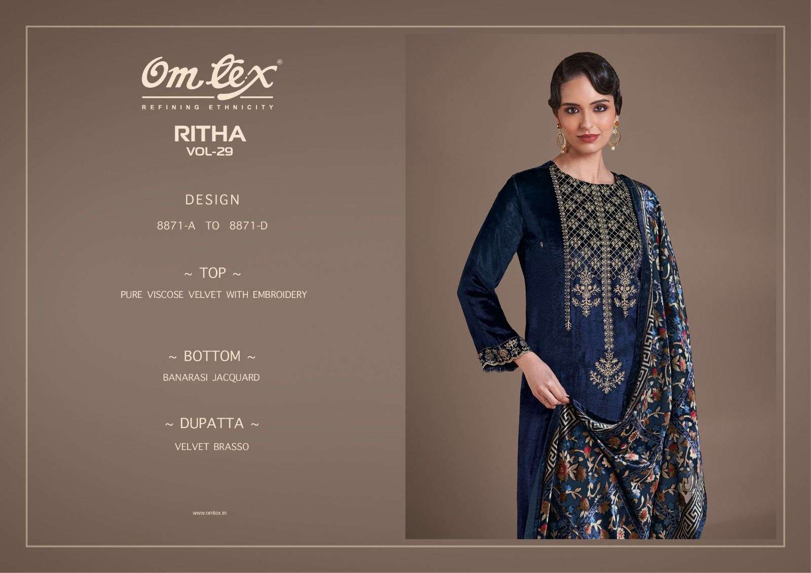 OM TEX RITHA VOL 29 VISCOSE VELVET WITH EMBROIDERY SALWAR SUIT WHOLESALE