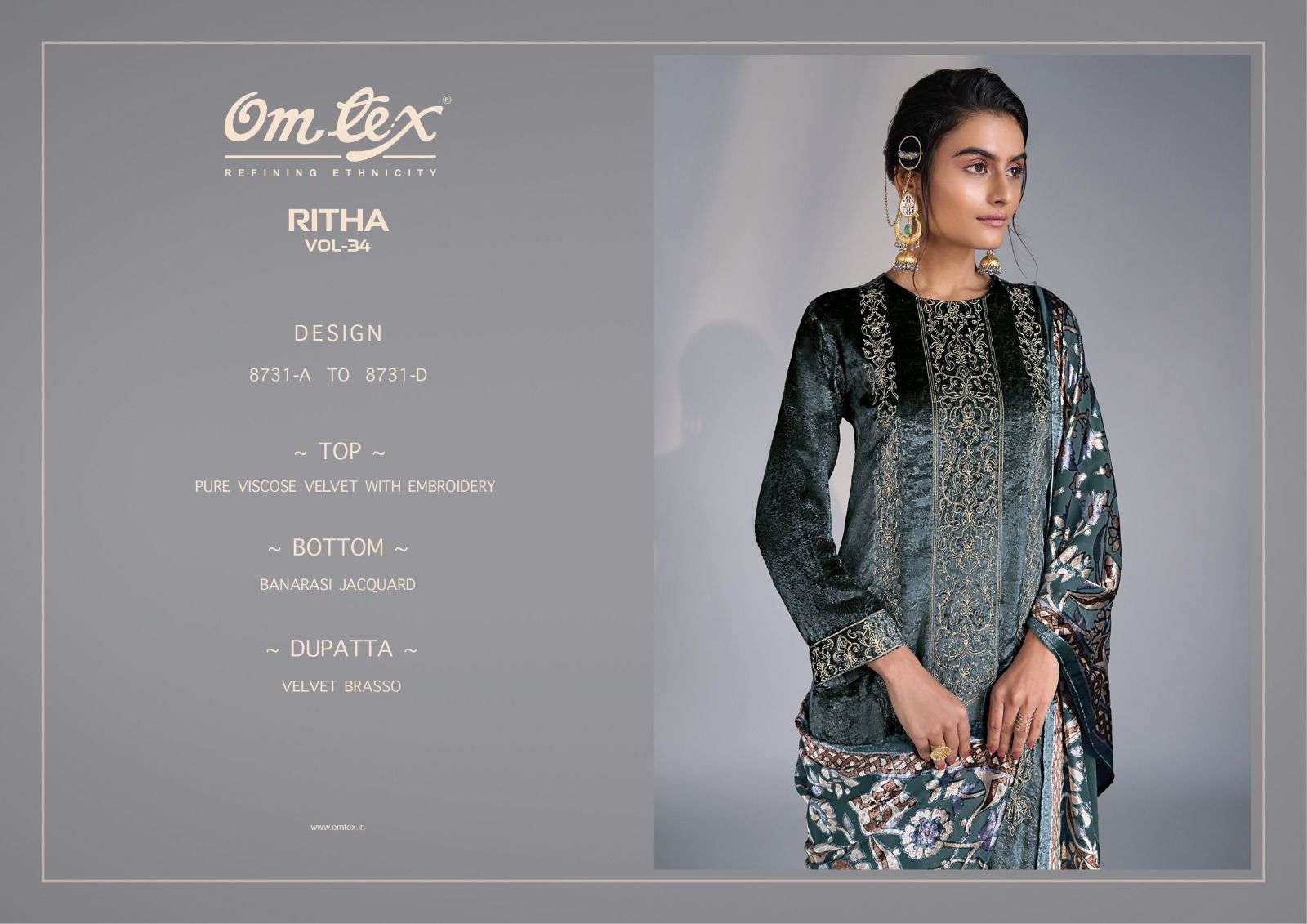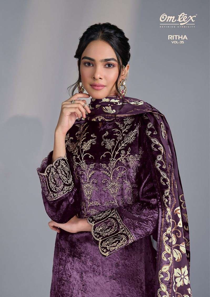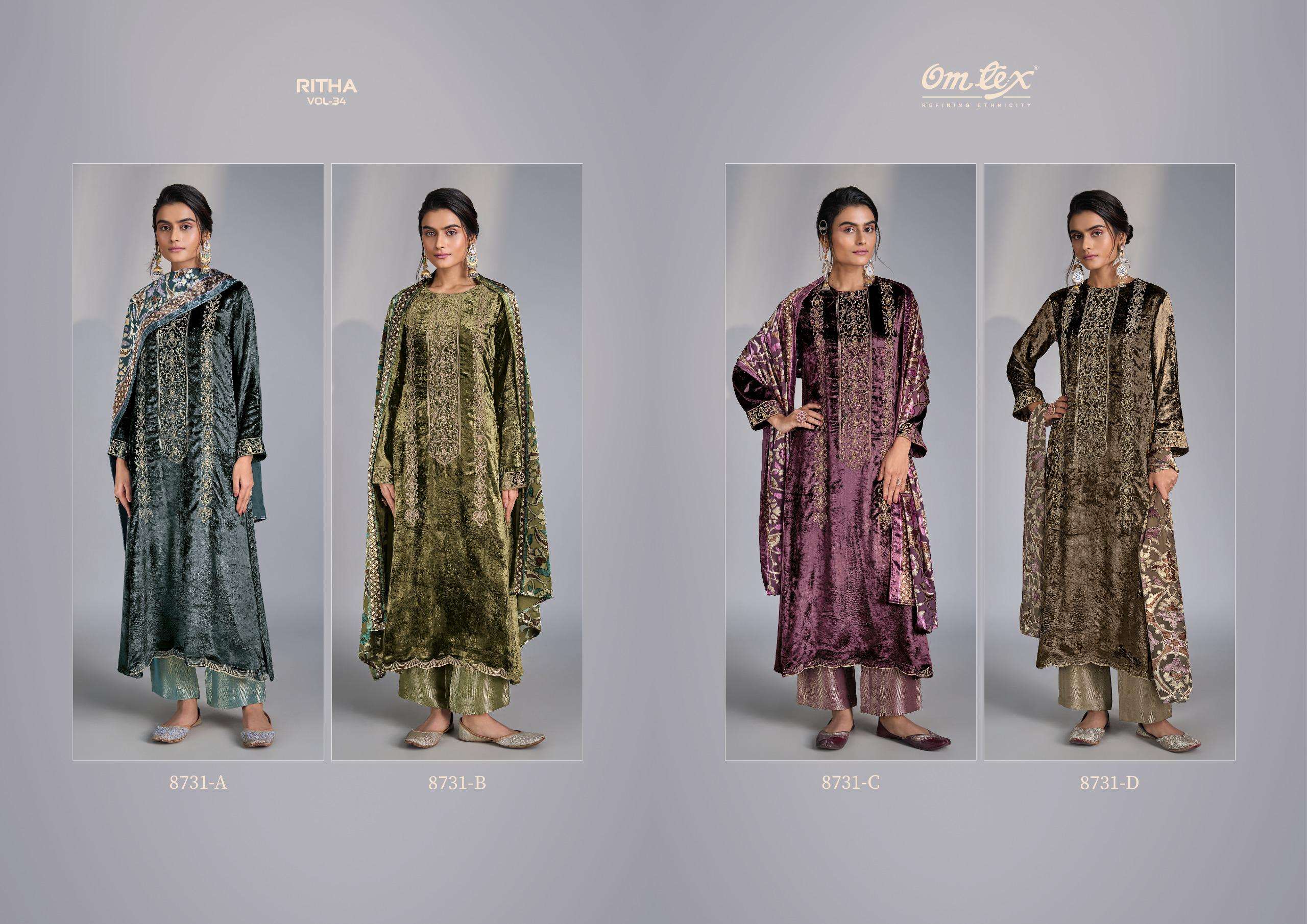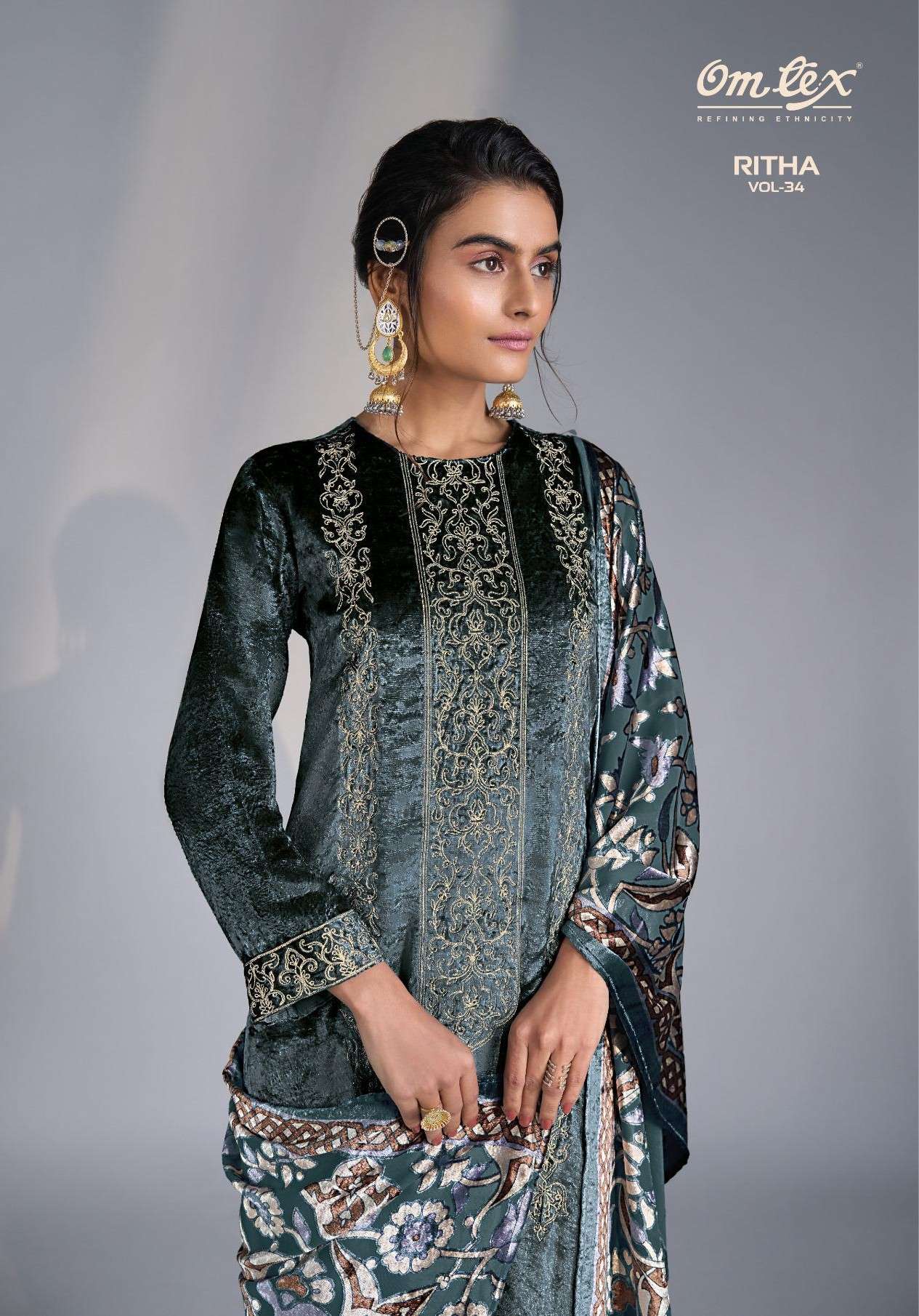 OM TEX RITHA VOL 34 VISCOSE VELVET WITH EMBROIDERY SALWAR SUIT TO SHADI TYPE CATALOG