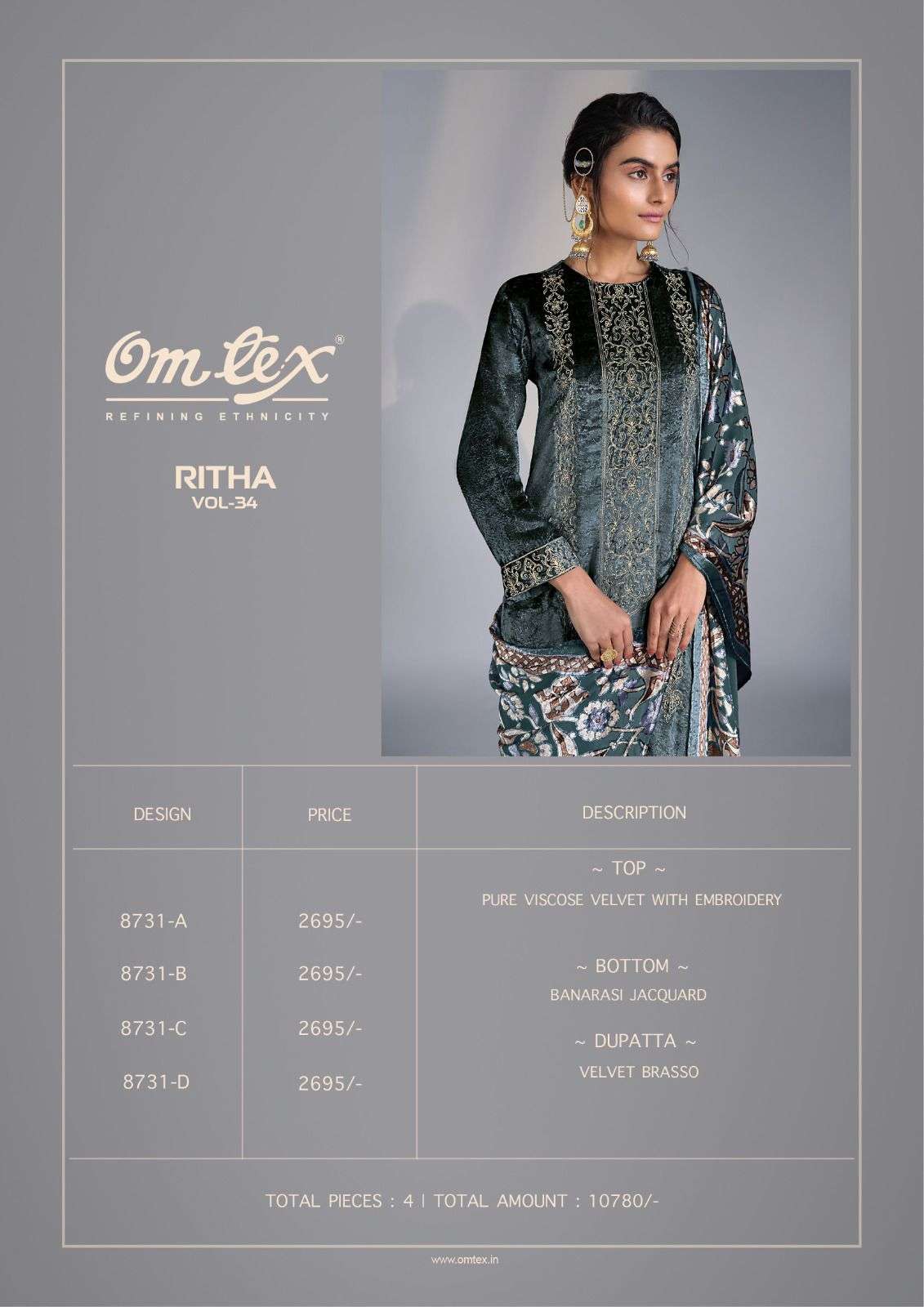 Title | OM TEX RITHA VOL 34 VISCOSE VELVET WITH EMBROIDERY SALWAR SUIT TO SHADI TYPE CATALOG |