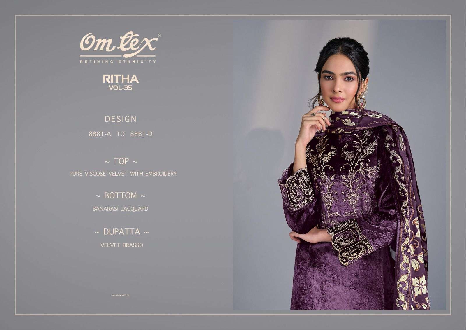 OM TEX RITHA VOL 35 HIGH PARTY CLASSIC STYLE VELVET HEAVY WORK UNSTITCH SUIT CATALOG