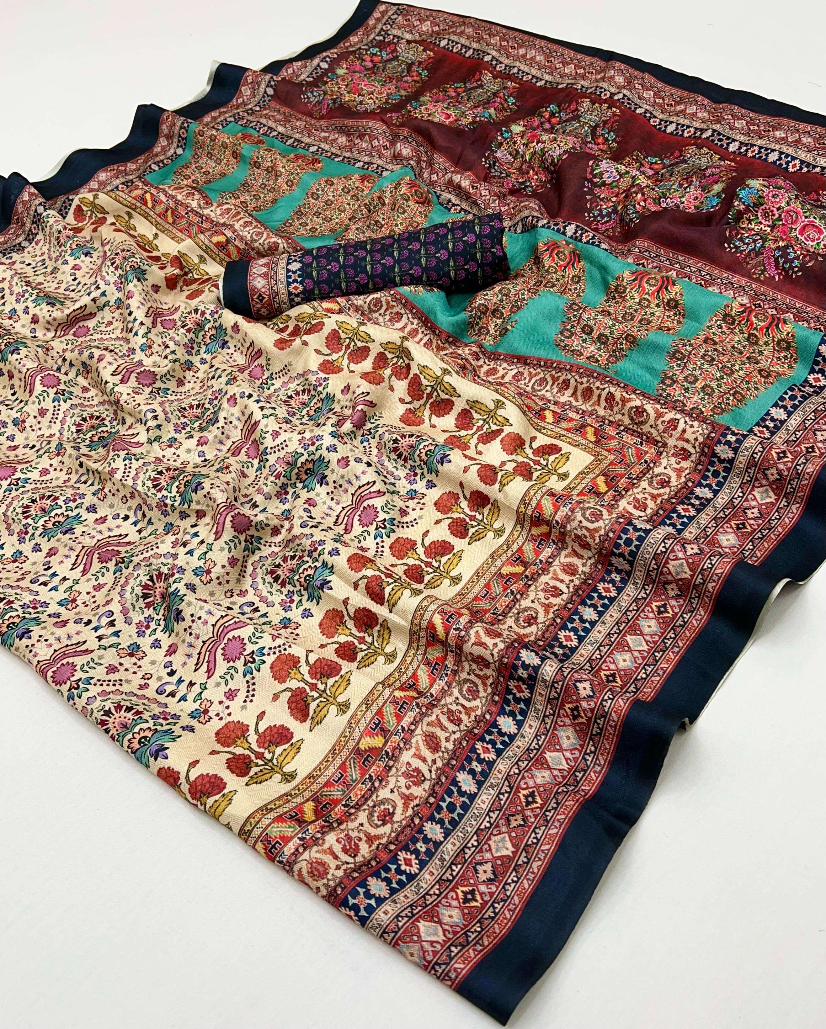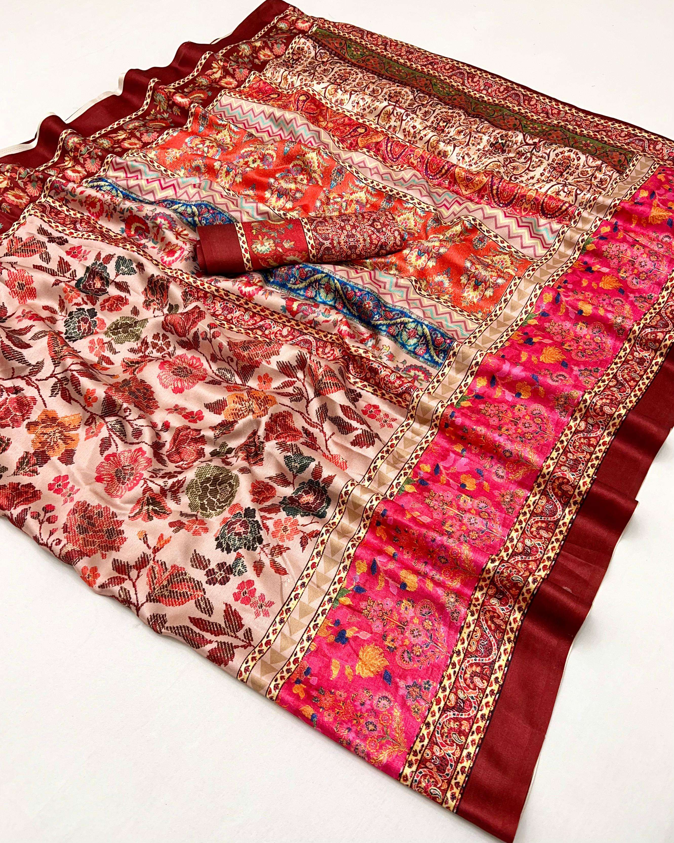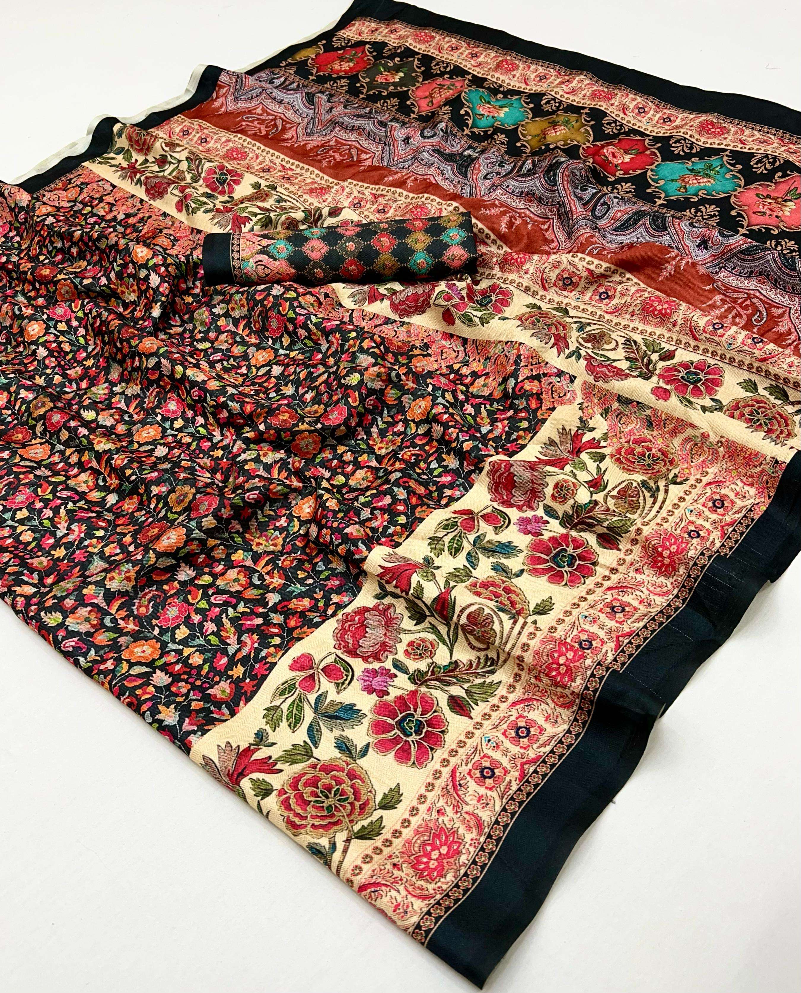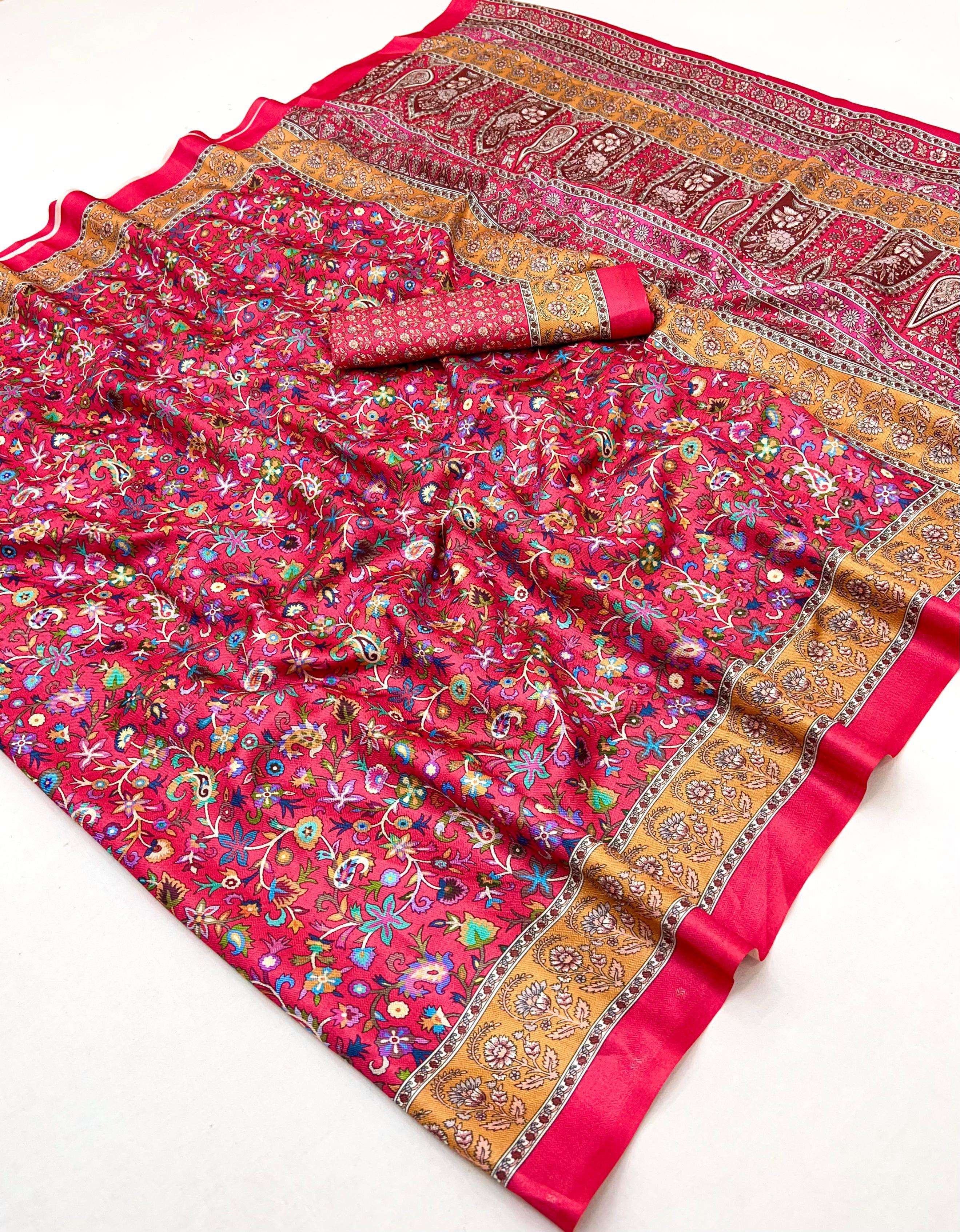 PASHMINA SILK FANCY PRINTED SAREE BEST COLLECTION