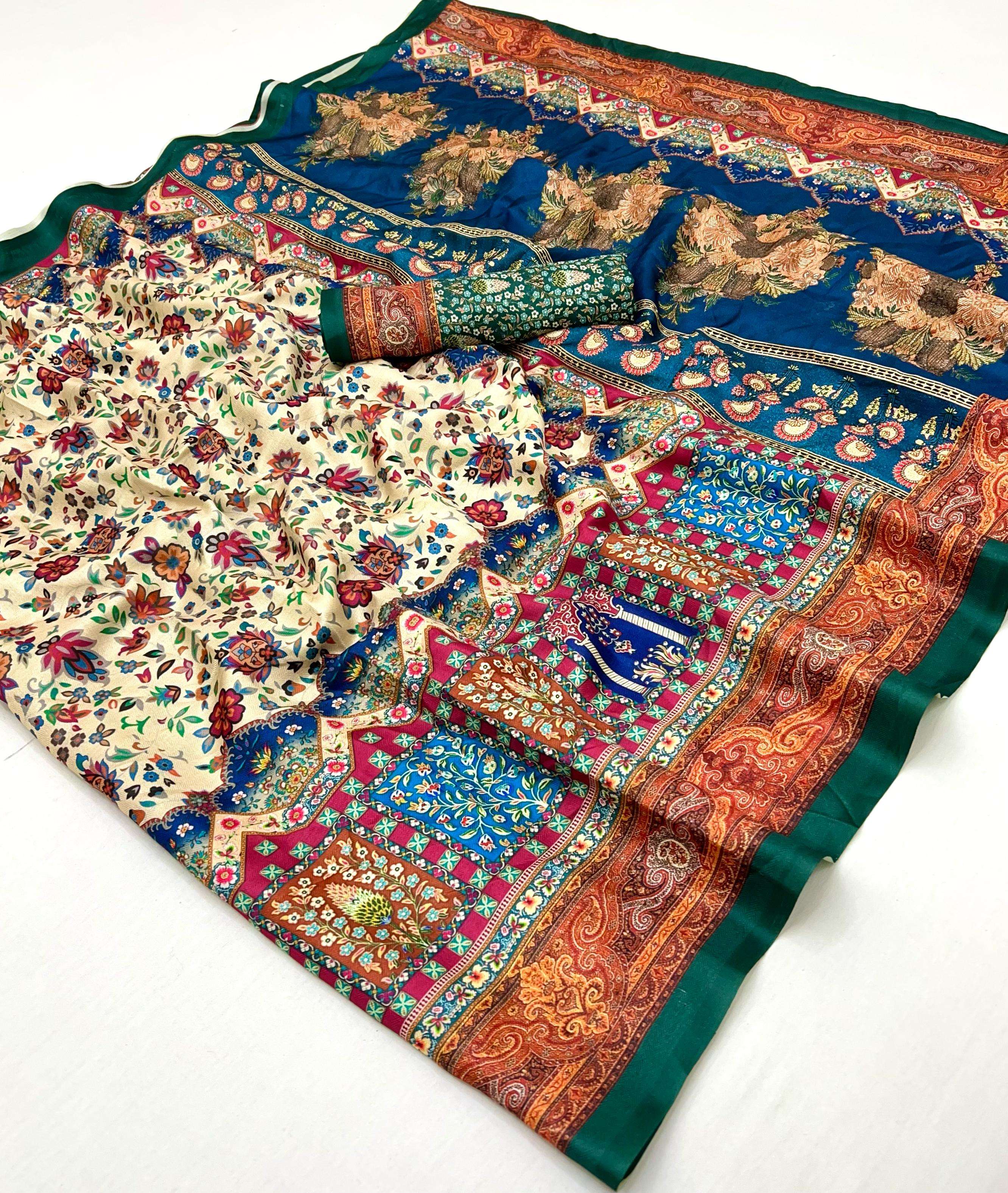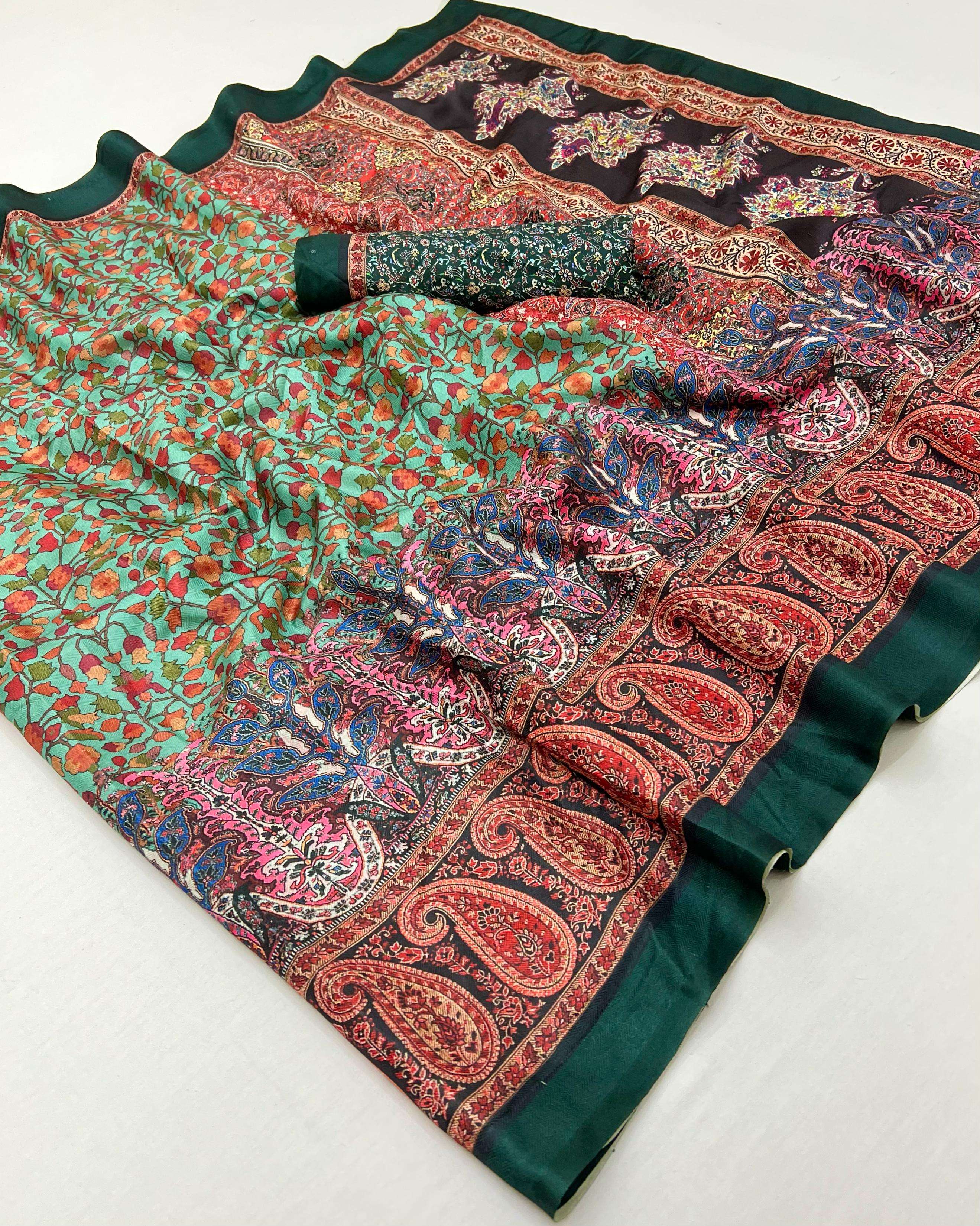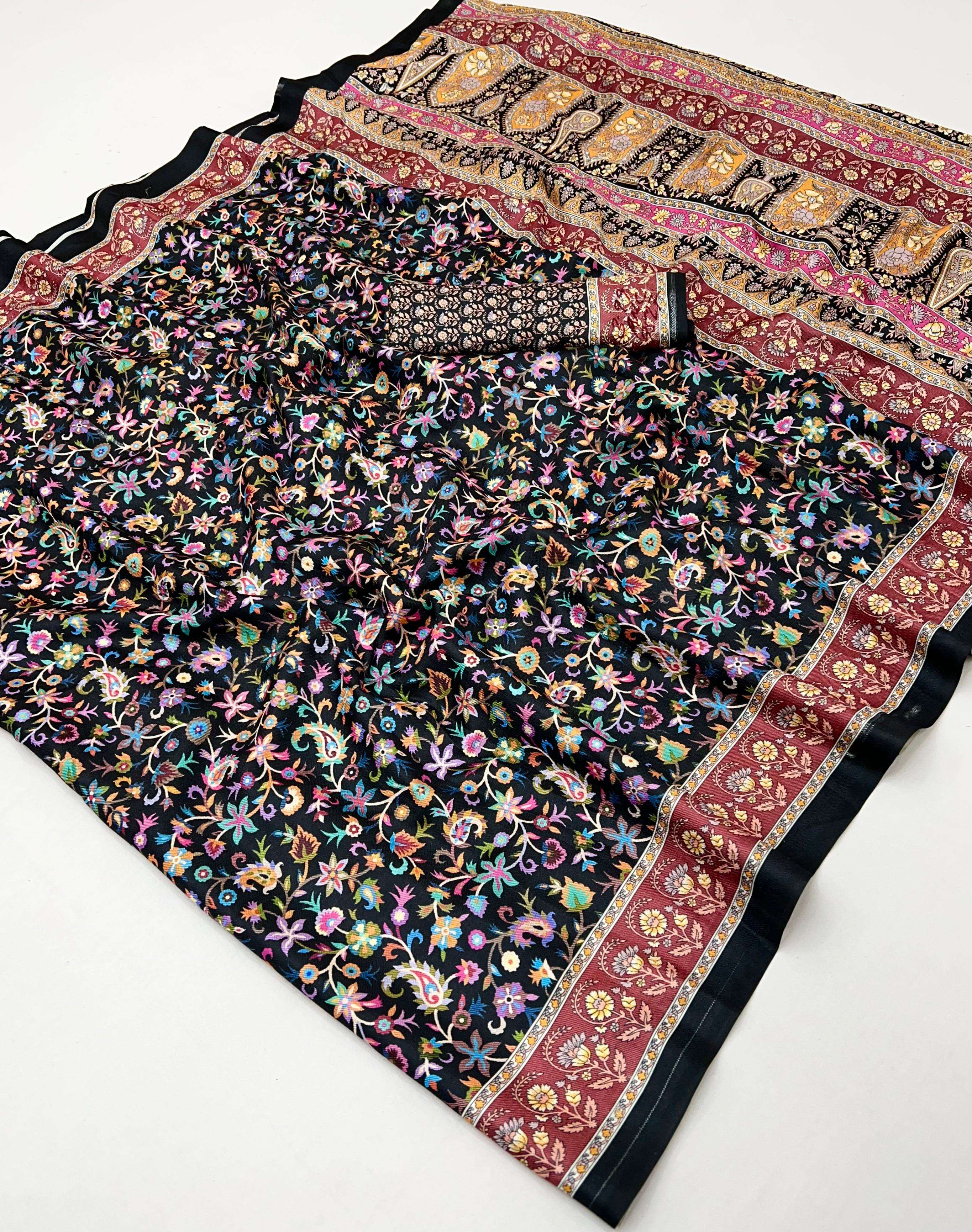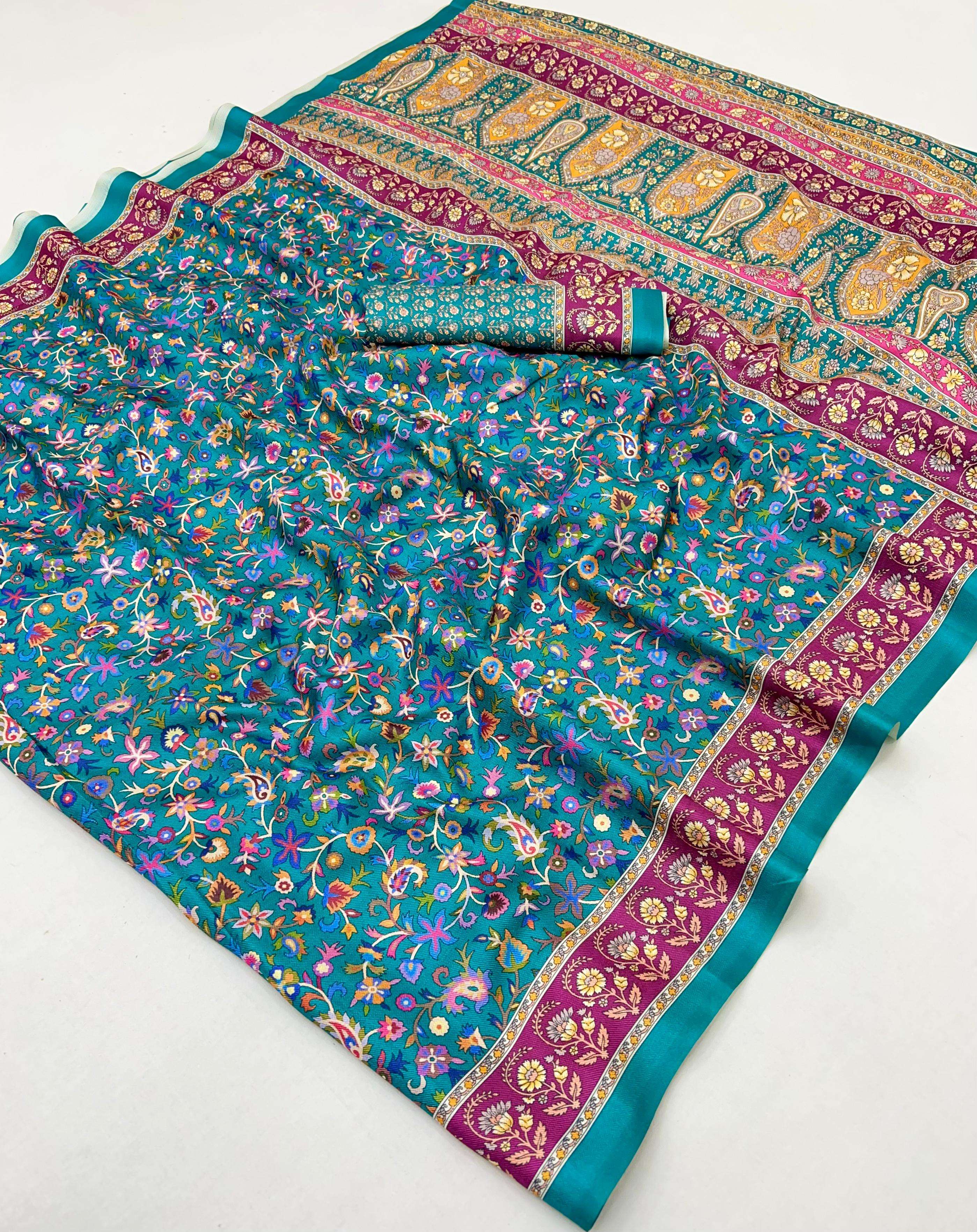 PASHMINA SILK FANCY PRINTED SAREE BEST COLLECTION