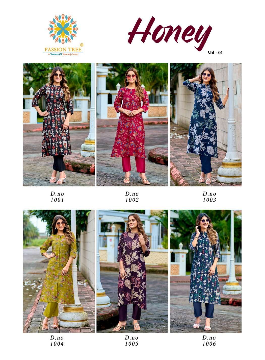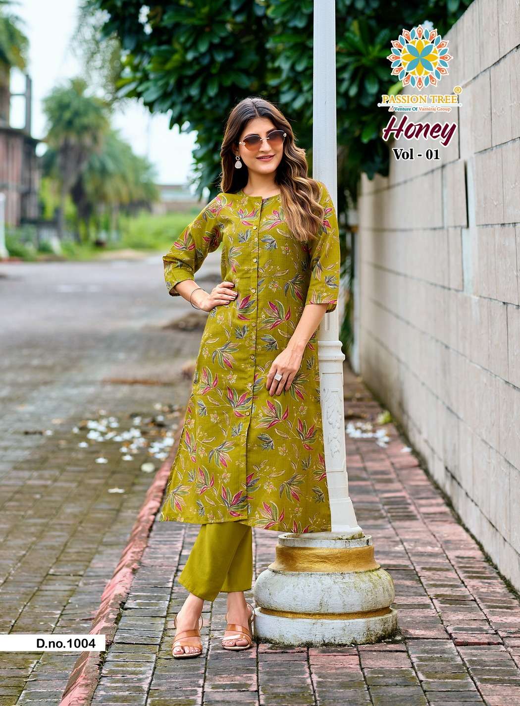 Title | PASSION TREE HONEY VOL 1 A LINE KURTI POCKET WITH PANT CASUAL OFFICE WEAR EXPORTER |