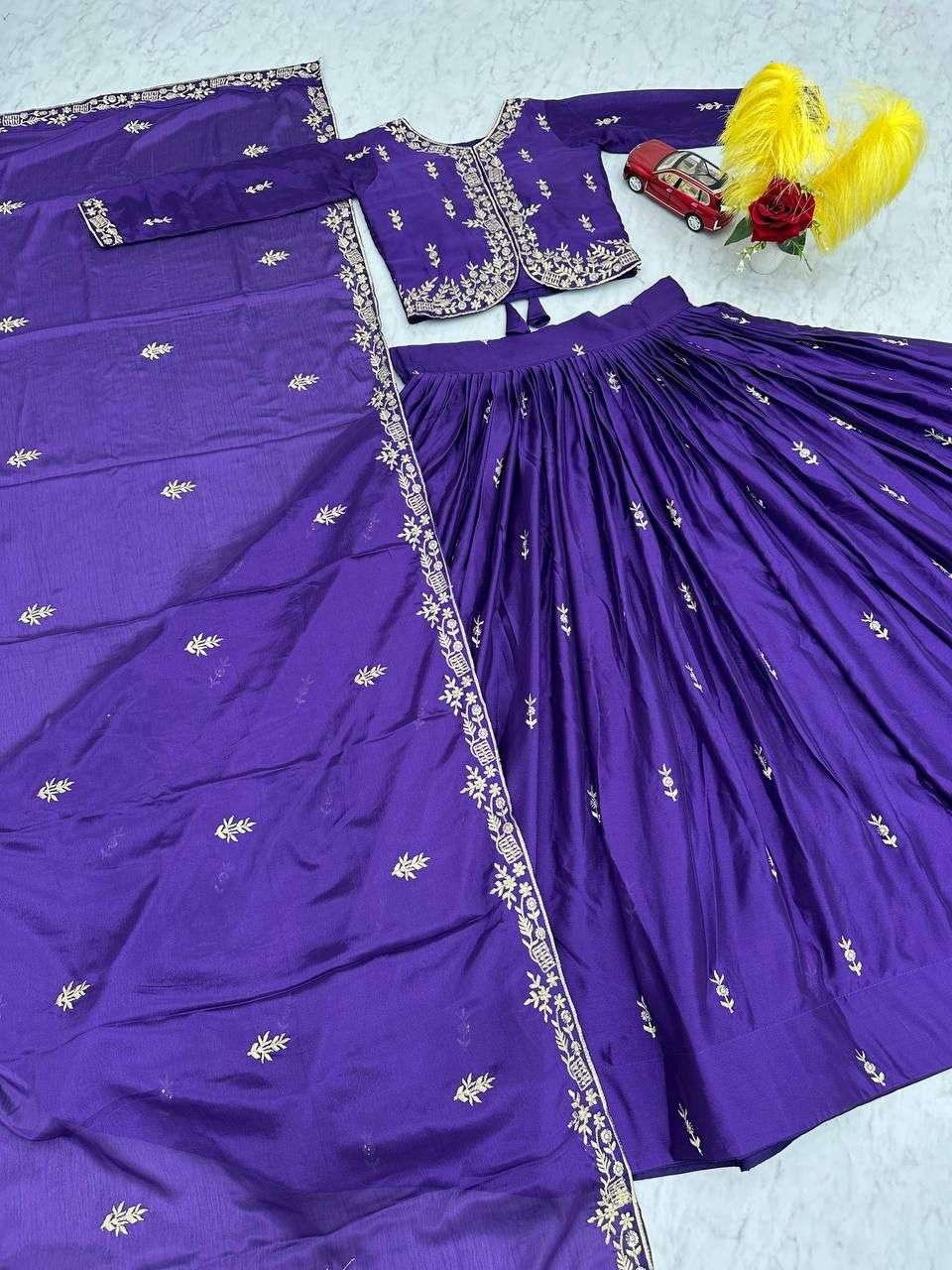 Title | Pc 471 Purple shade Chinon Fabric embroidery work readymade croptop Style Suits best Collection |