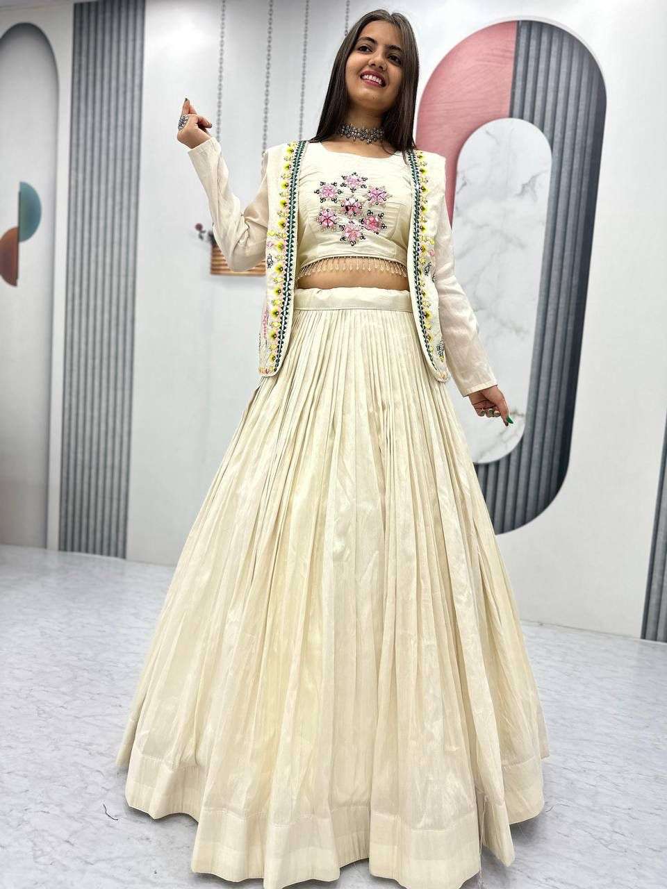 PC 522 Tusser Silk Embroidery work western look lehenga choli best Collection