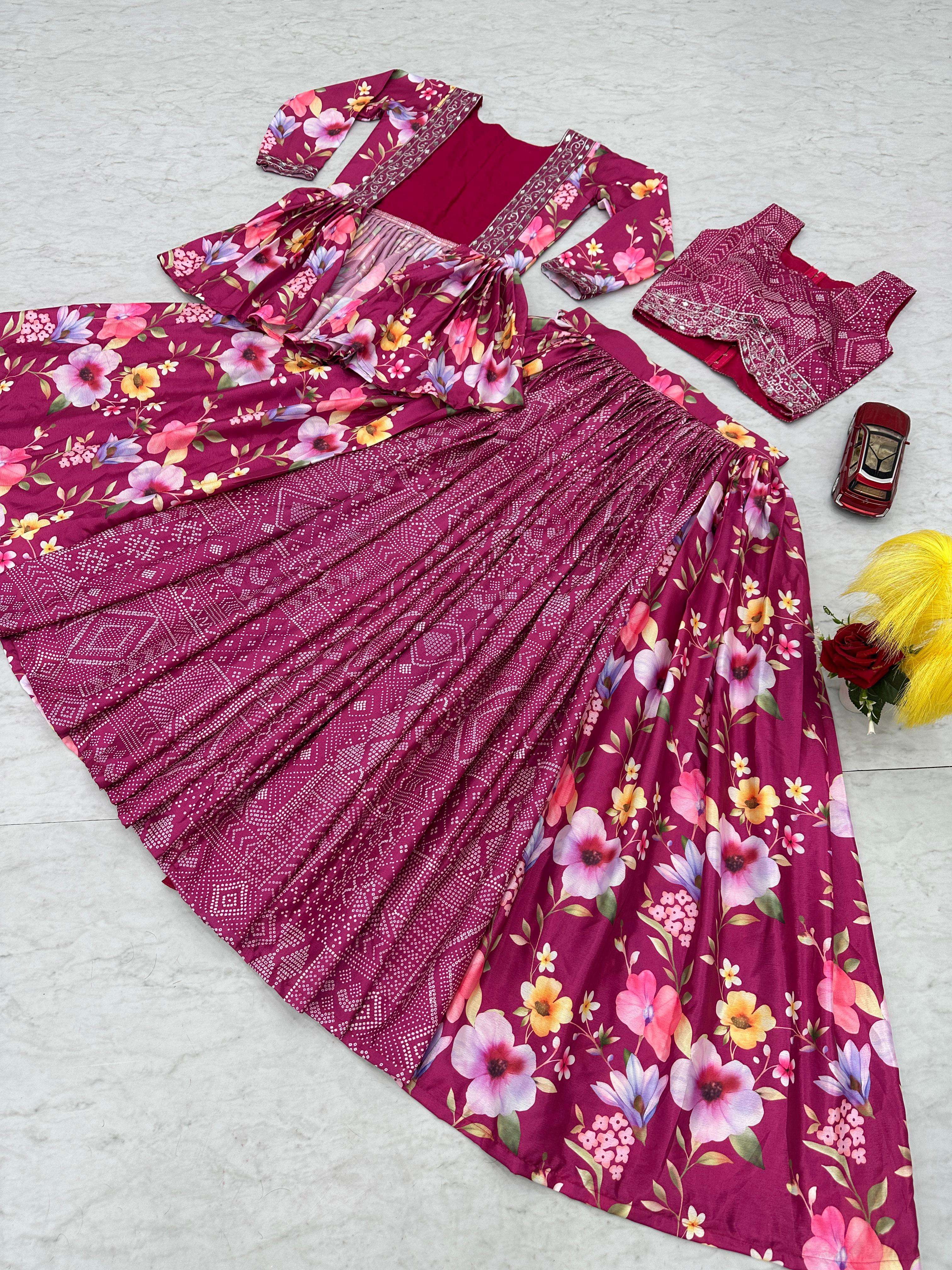*đź‘—Lehengađź‘—* *Fabric:-* Chinon *Inner:-* Micro Cotton *Flair:-* 3.50 Meter *Size:-* 44 *Length:-* 42