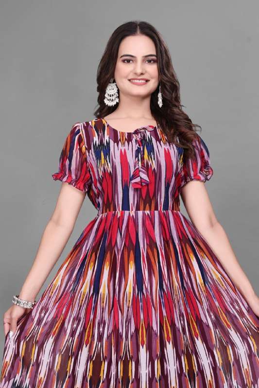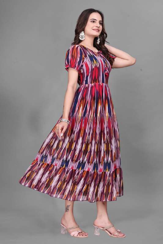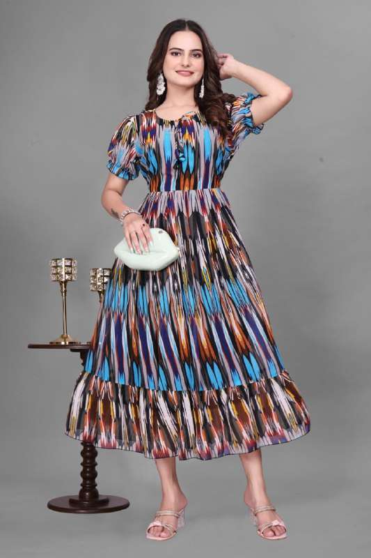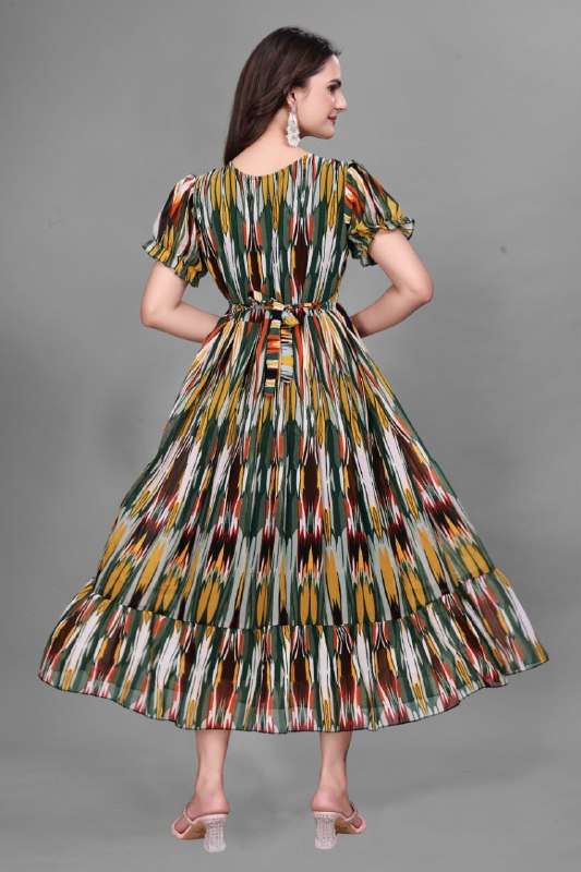 Buy Online PEACOCK DESIGN GEORGETTE LONG MAXI DRESS SUMMER COMFORT ONE PIECE DEALER RANG 4 Pcs of Full Catalogue at Wholesale Price. Looking for PEACOCK DESIGN GEORGETTE LONG MAXI DRESS SUMMER COMFORT ONE PIECE DEALER RANG Full Catalouge at Best Price? Buy Now PEACOCK DESIGN GEORGETTE LONG MAXI DRESS SUMMER COMFORT ONE PIECE DEALER RANG at Wholesale Rate of Rs 1800 with Total 4 Pcs from authroized dealer and supplier of rang Brand. Cost of Each piece is just only Rs 450 which is very low and affordable price to resale the product in your retail store Ethnic Export is Surat based Wholesale Supplier & Dealer of rang Brand. Click on Brand name to Know more about rang Brand's products.Call or Whatsapp on +91-9825759366 for booking or enquiry