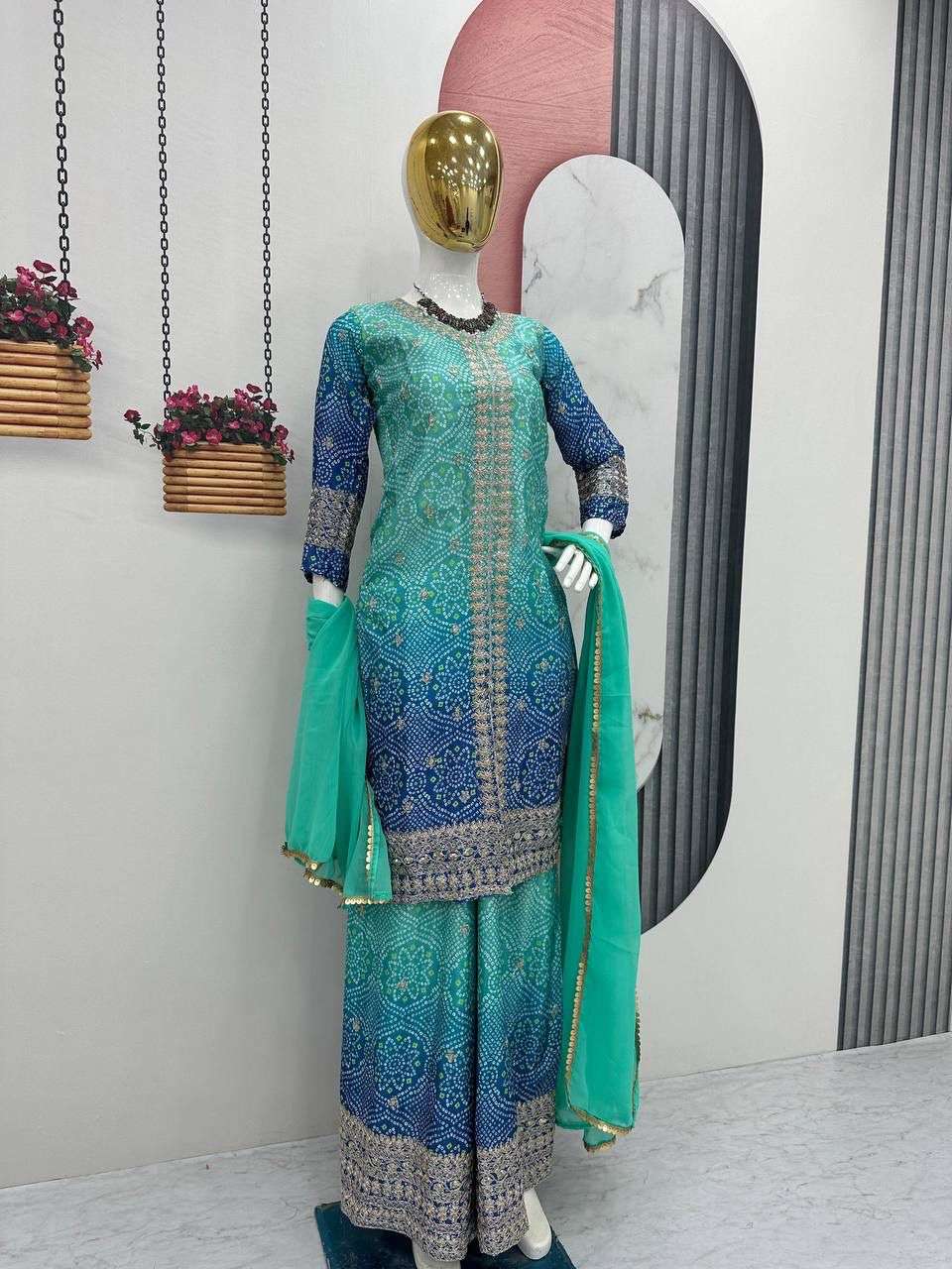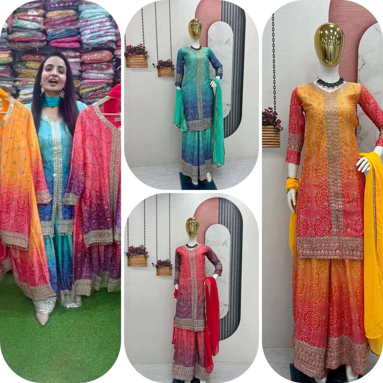👗 Bottom👗 *Fabric:-* Chinon *Work:-* Shadded Print *Length:-* 40/41 *(Fully Stitched Ready To Wear)*