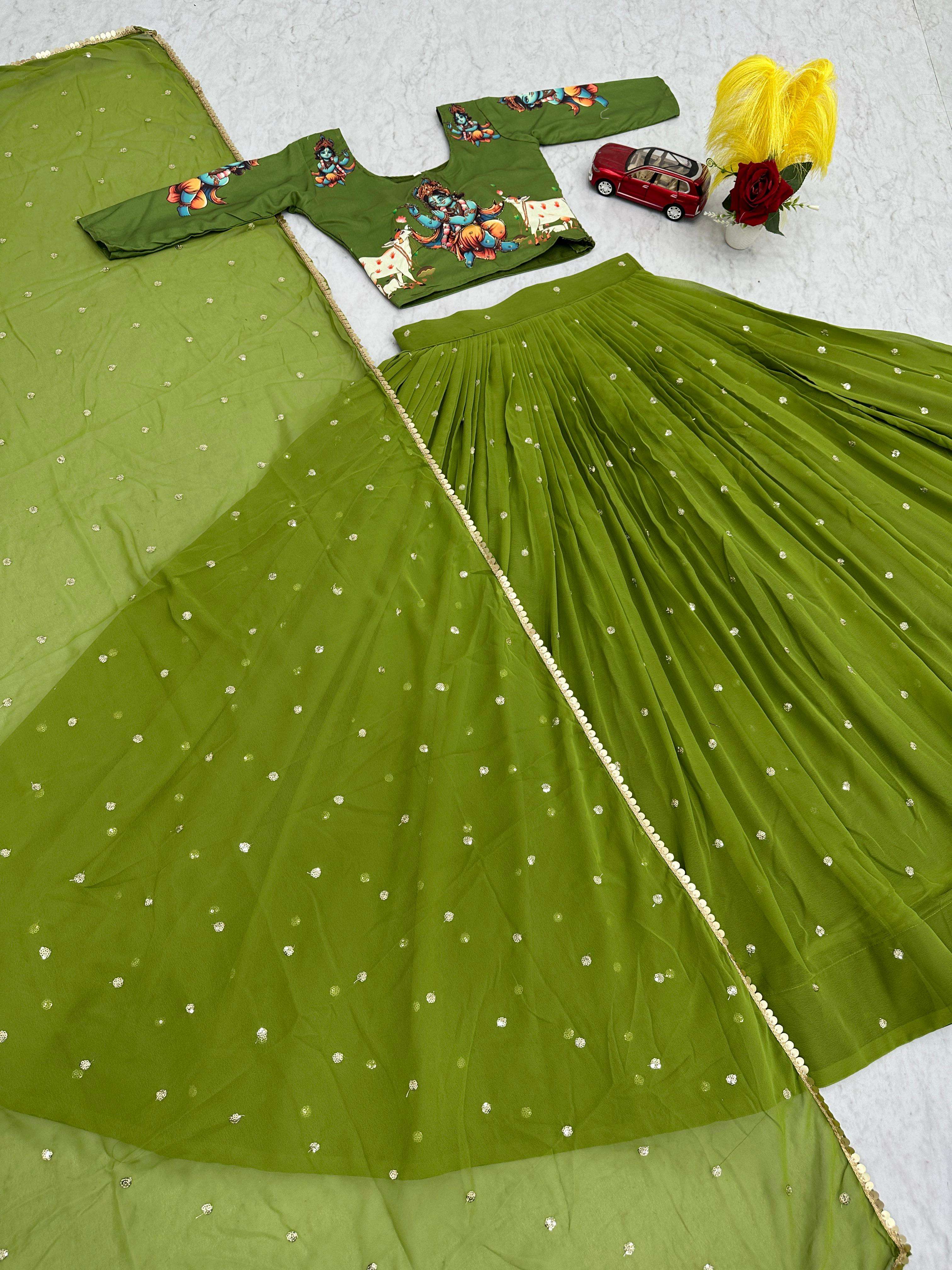 👗Lehenga👗 *Fabric:-* Fox Georgette *Work:-* Heavy Embroidery Work *Inner:-* Micro Cotton *Flair:-* 3 Meter *Canvas:-* Yes *Size:-* 44