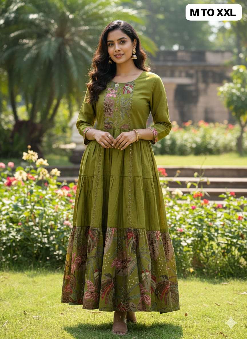 NEW LAUNCH FANCY FULL RAUND GOWN PRIMIUM VARTICAN SILK FABRIC 🪡 ORIGINAL MIROR NACK WITH CONTARAST PATCH WORK SIZE M TO 2XL LANTH 44/45+ 4 MITAR FLAYER GHERA