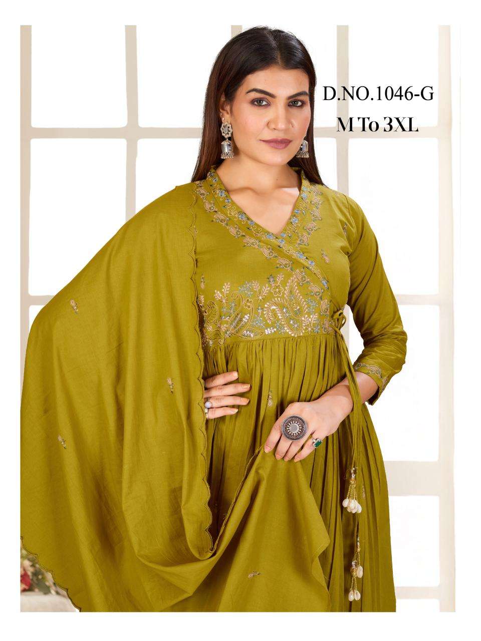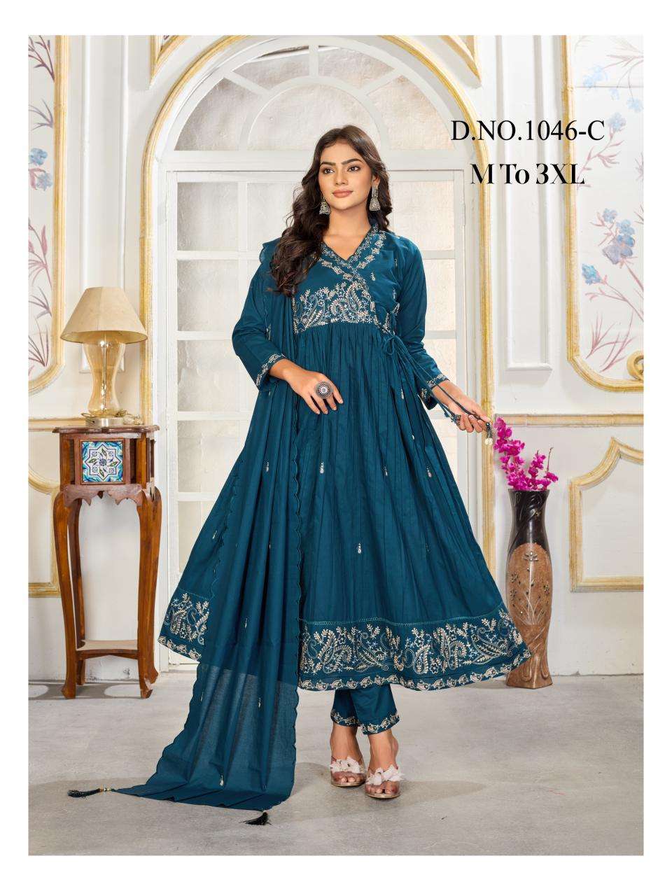 Top :- Pure mull dhabu Cotton with new Emroidari work... Bottom :- Cotton pants with work Dupatta :- Mall cotton with kalmkari Work WITH COTTON INNER SIZE : M- L- XL- XXL - 3XL Beautiful Emroidari wrok with latkan Angrakha pertun These are combo sets: Select 1 Color All Size Compulsory  |