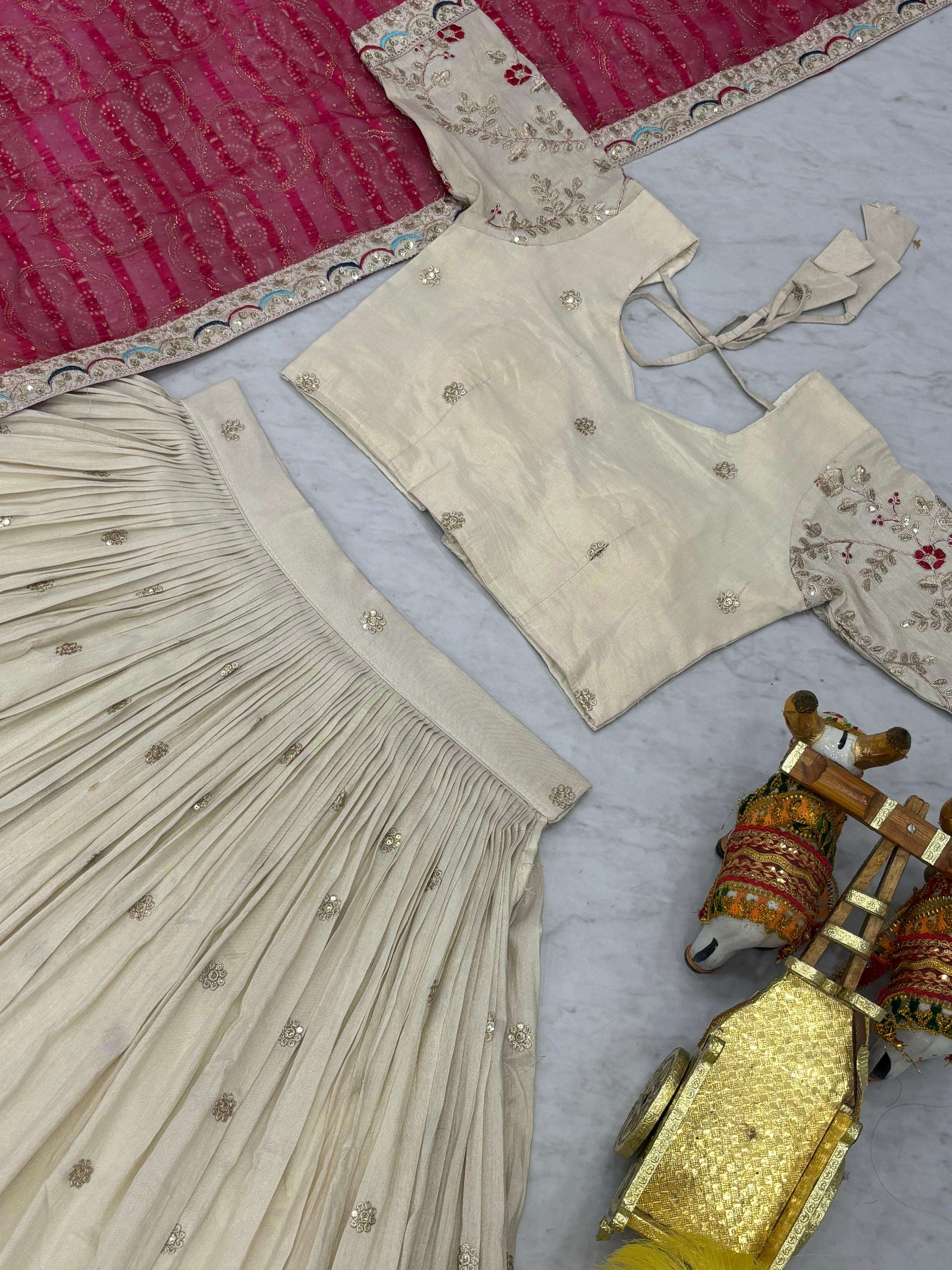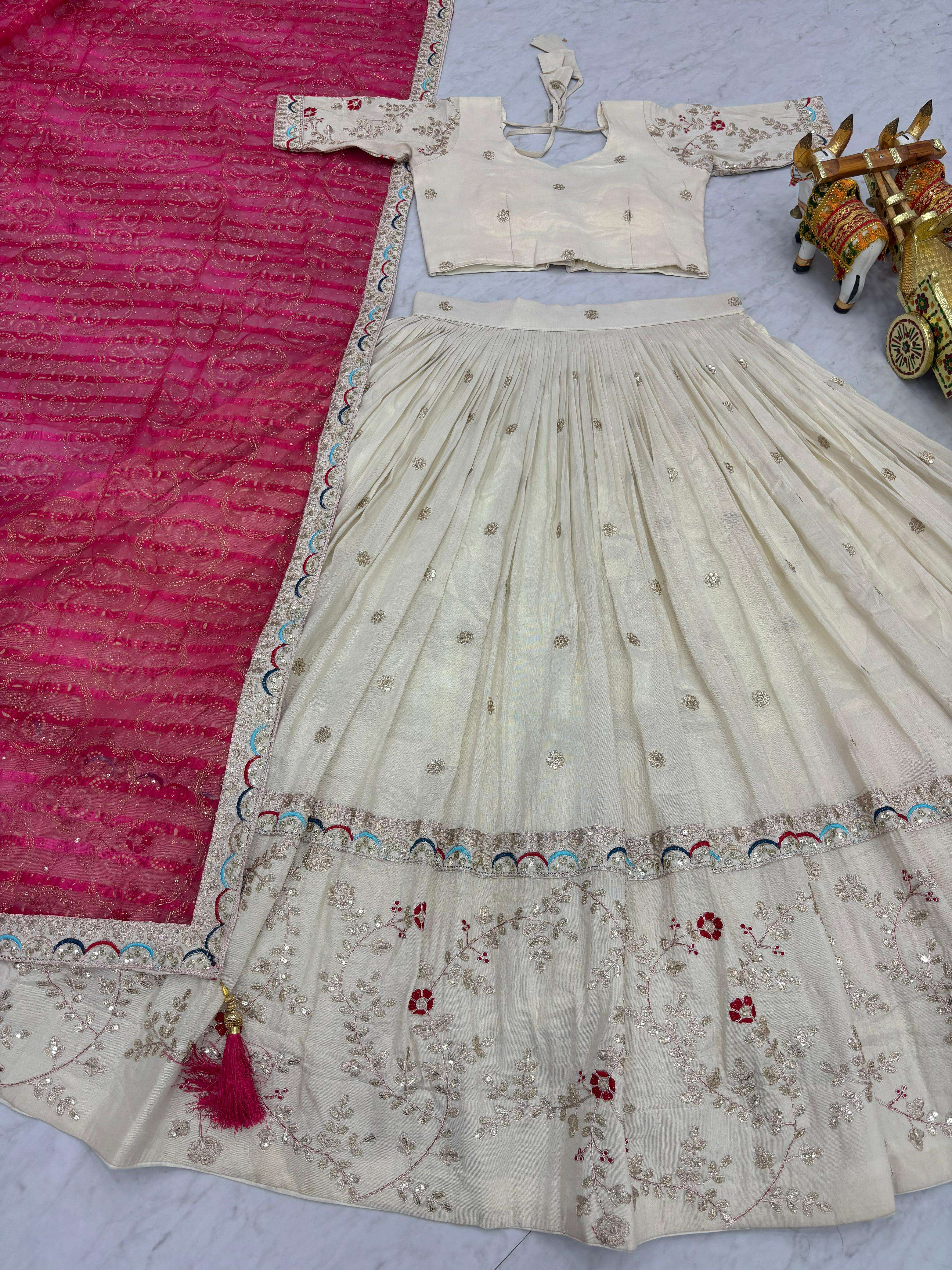 Ram 145 Tissue silk Embroidery work designer lehenga choli best Collection