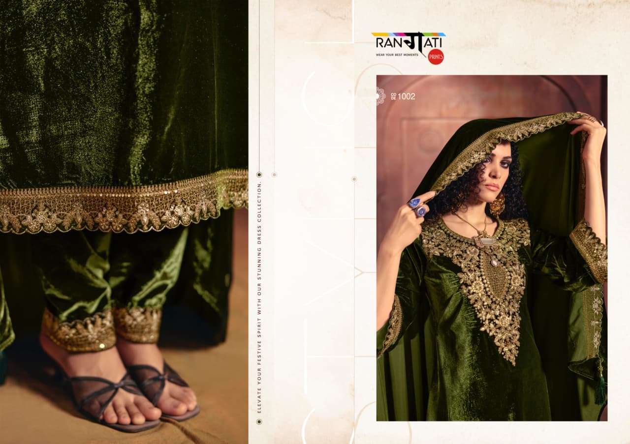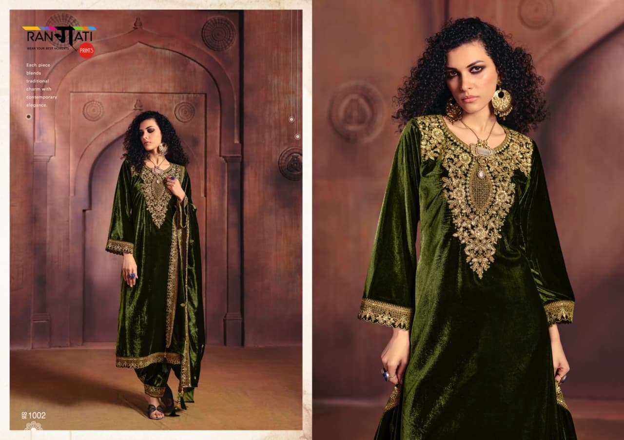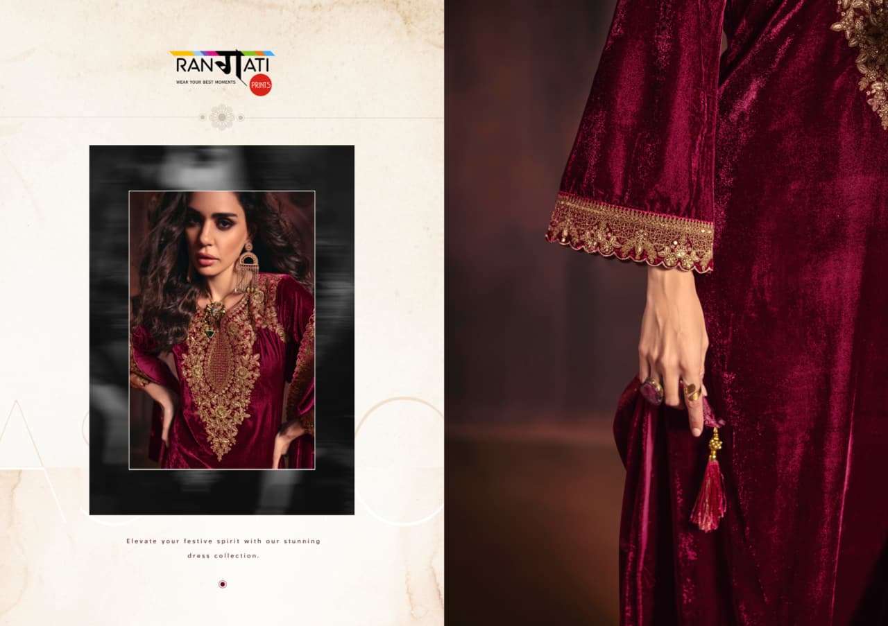 RANGATI PRINTS NAILA SILK VELEVET WITH EMBROIDERY HEAVY SUIT TO WEDDING WEAR