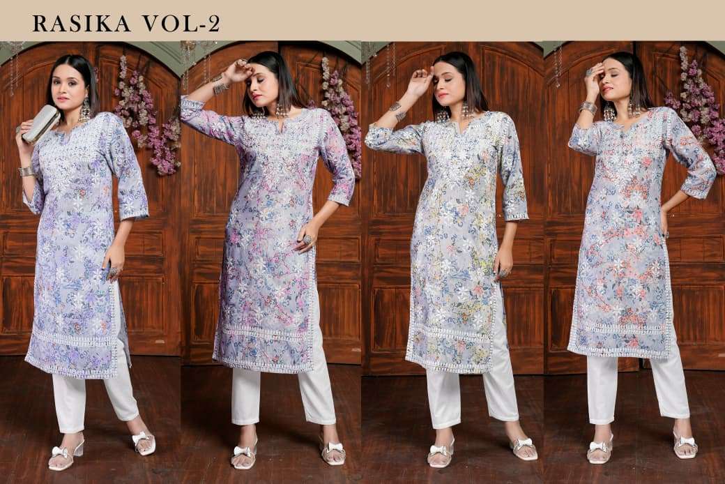 | Title | RASILI NX RASIKA VOL 2 HEAVY COTTON CHIKANKARI WORK YOUNG STYLE KURTI PANT FASHION DEALER |