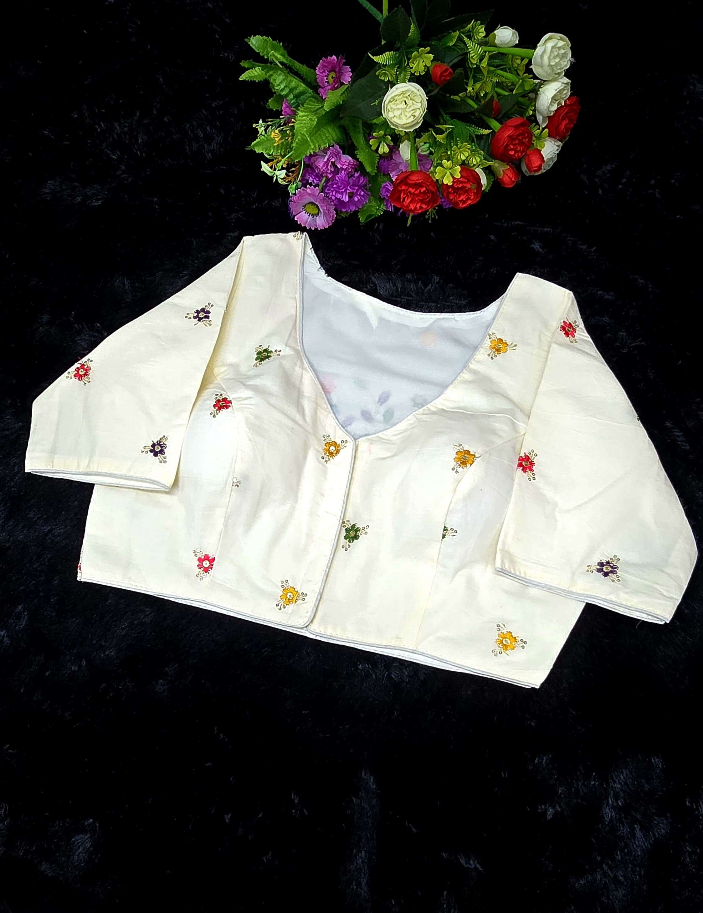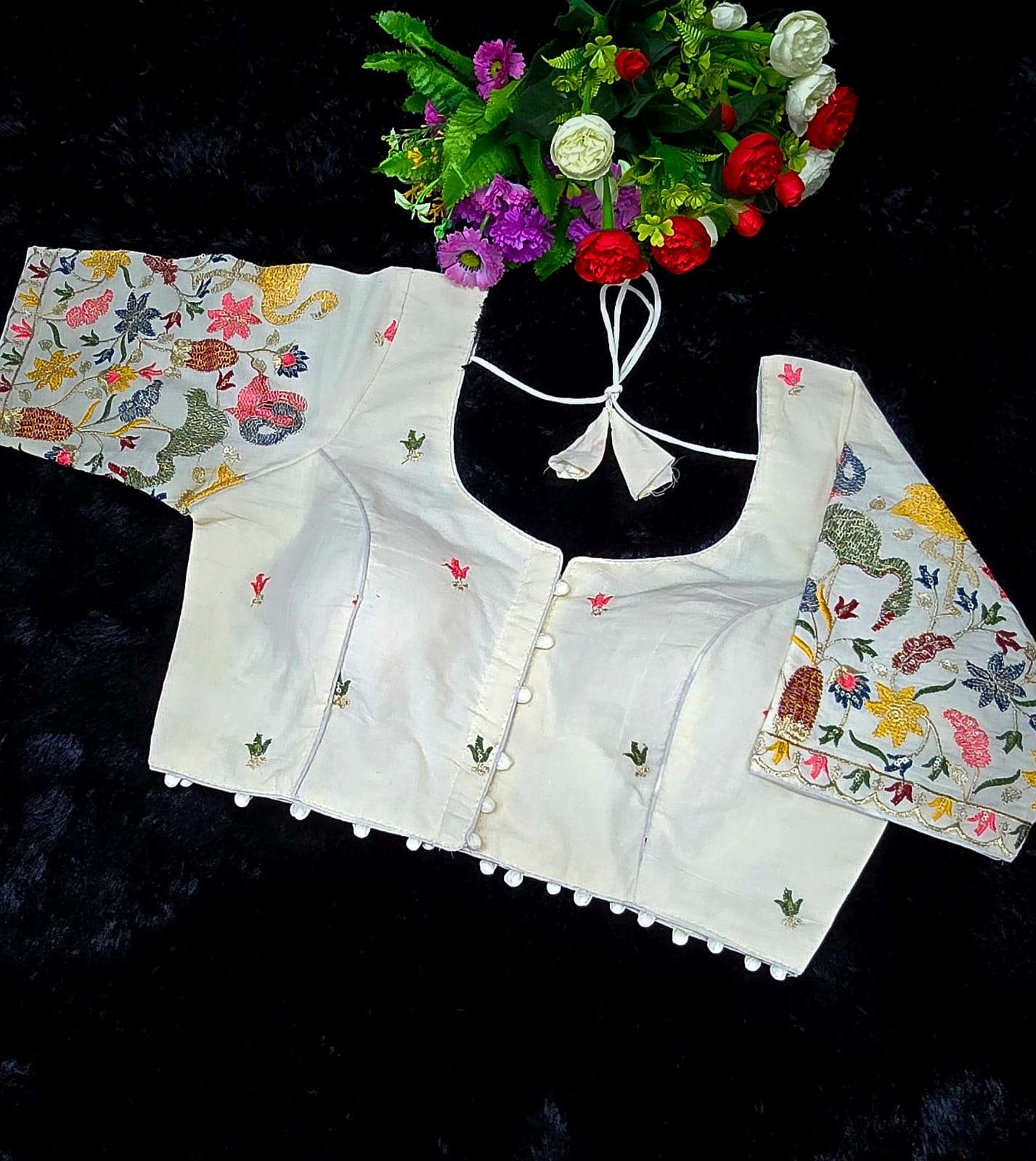 Title | READY TO WEAR WHITE COLOR KHADI COTTON EMB. BLOUSE FOR NAVRATRI SIMILAR LOOK |