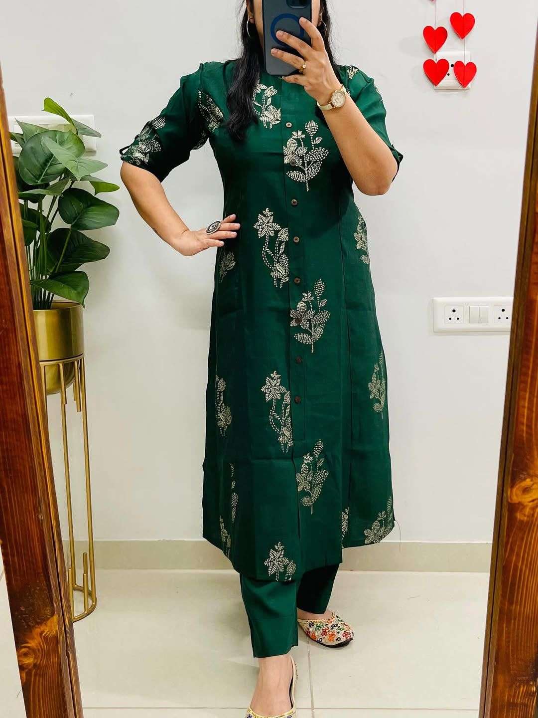 Launching Designer Co-Ords set in Aline kurti pattern paired with Ankle length pant giving perfect outfit and deliberate choice about your look..... Length 44 SINGLE ALSO AVA |