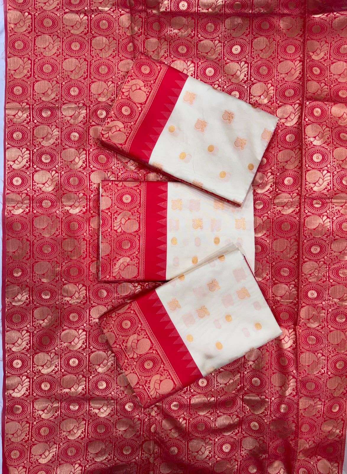 *FABRIC : SOFT LICHI SILK CLOTH.* *DESIGN : BEAUTIFUL RICH PALLU & JACQUARD WORK ON ALL OVER THE SAREE.* *BLOUSE : CONTRAST HEVY BROCADE BLOUSE.*