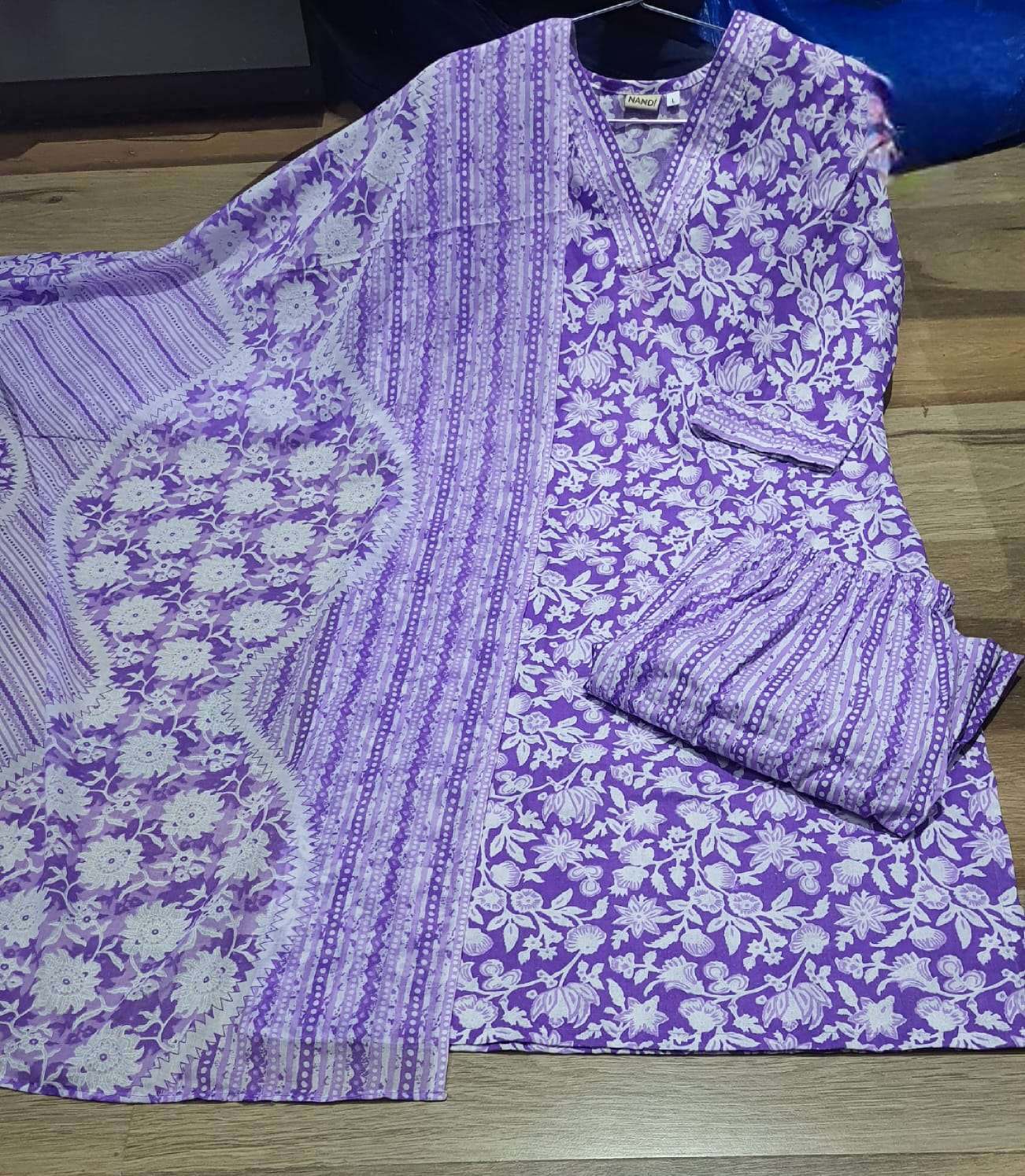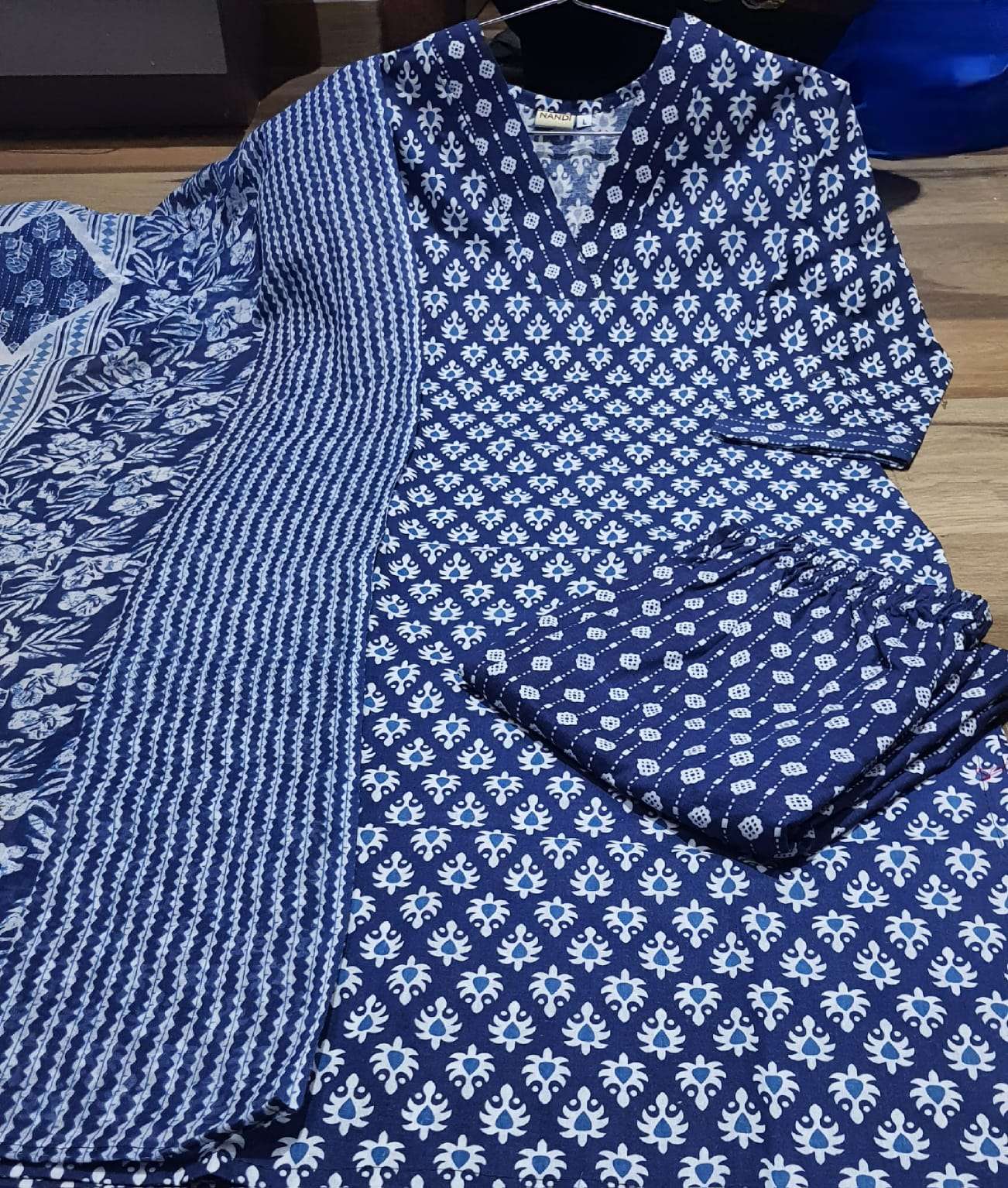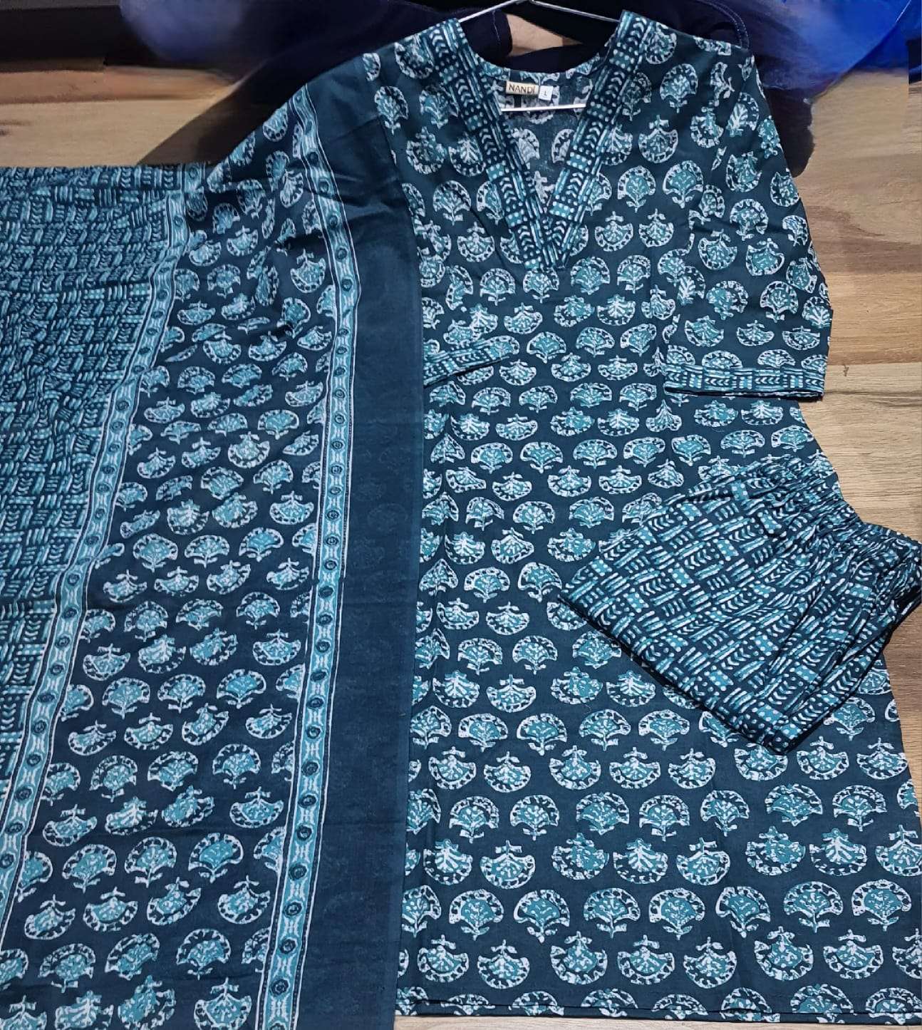 Kurti with beautiful V neck pattern patti. Pant with both side elastic n Miyani Don't compare with other cheap products Size:- M L XL XXL 3XL SINGLE ALSO AVA |