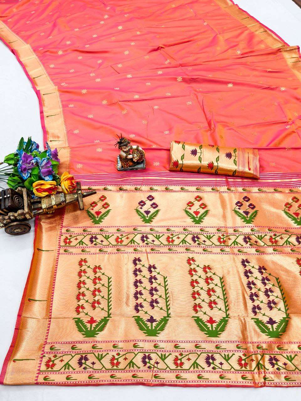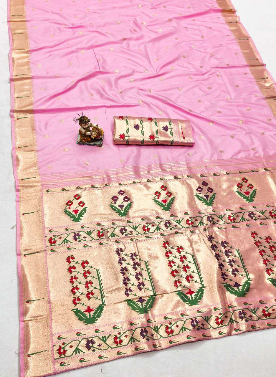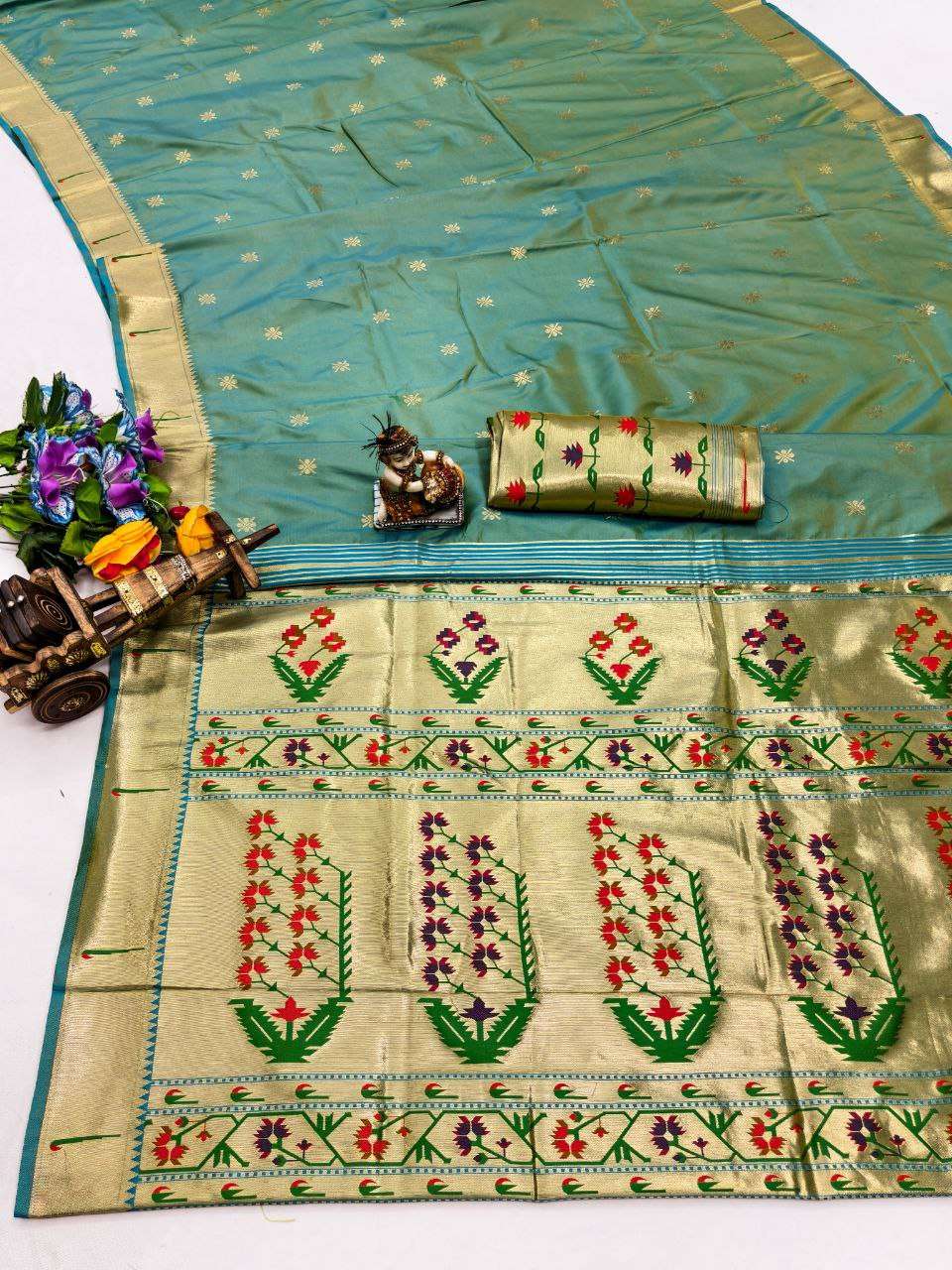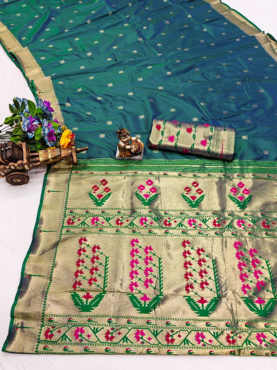 RENUKA PAITHANI COLLECTION SILK SAREE WITH MUNIYA BORDER GOLD JARI BUTTI PALLU BUY ETHNIC